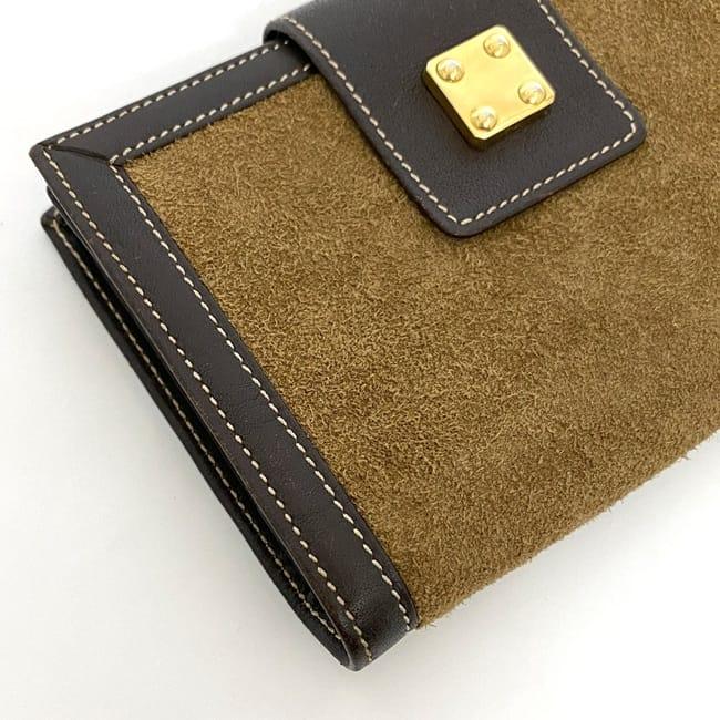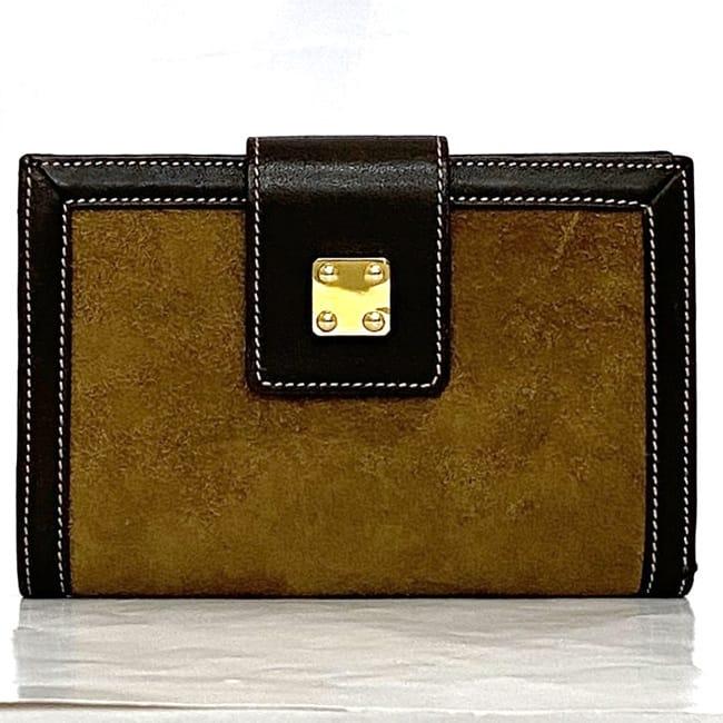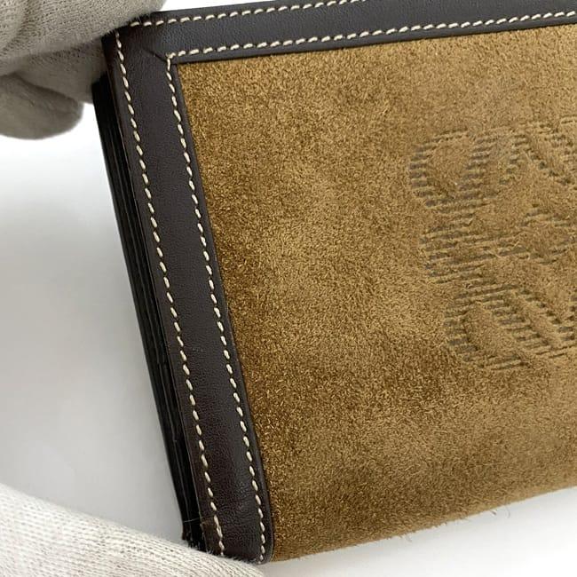 ☆---- 商品について ----☆ロエベ 二つ折り がまぐち 財布 ec-22495 ブラウン ベージュ アナグラム 21.09.11 美品 レザー スエード 中古 LOEWE 折り財布 ガマグチ コンパクト ヴィンテージ ロゴ 定番 人気 レディース 革 小物 シンプル お洒落 ウォレット 高級感 ブランド 本物 鑑定済み