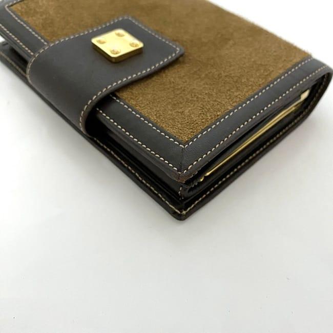 商品名:二つ折りがまぐち財布ブランド名:ロエベ/LOEWE商品ランク:Aランク素材:レザースエードサイズ:(約)w:13cm×h:8.5cm×d:3cm型番・品番:21.09.11ライン:アナグラムカラー:ブラウンベージュ仕様:カードポケット×4クリアポケット×2札入×1小銭入れ(がま口)×1付属品:箱詳細説明:角に擦れ、金具に小傷、フラップや表面レザー部分に傷、クリアポケットにくすみ、小銭入れ表面にホック押し跡、小銭入れ内に擦れ、内ポケットに糸ホツレ、箱に小傷など使用感がございますが比較的綺麗なお品物です。管理ナンバー:ec-22495no,4210355250306