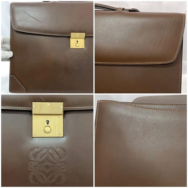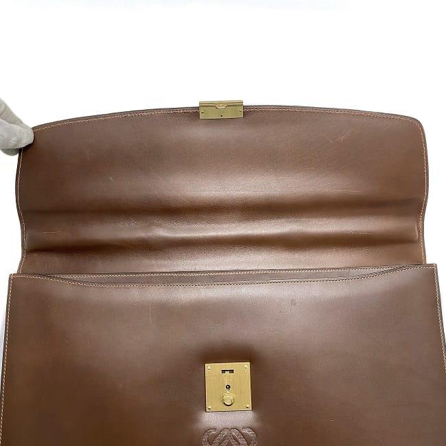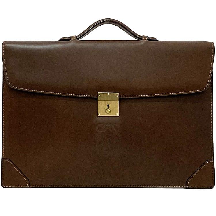 ロエベ ブリーフケース f-22440 ブラウン アナグラム 美品 レザー 中古 LOEWE ヴィンテージ フラップ シンプル ロゴ 書類バッグ ビジネスバッグ 茶色 書類 a4 レディース メンズ 本革 ロゴマーク ゴールド金具 アナグラム刻印 ブランド 本物 鑑定済み