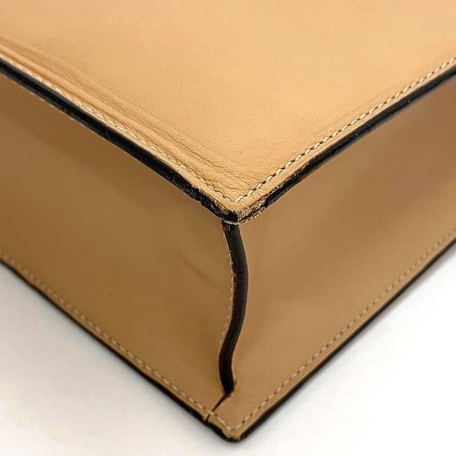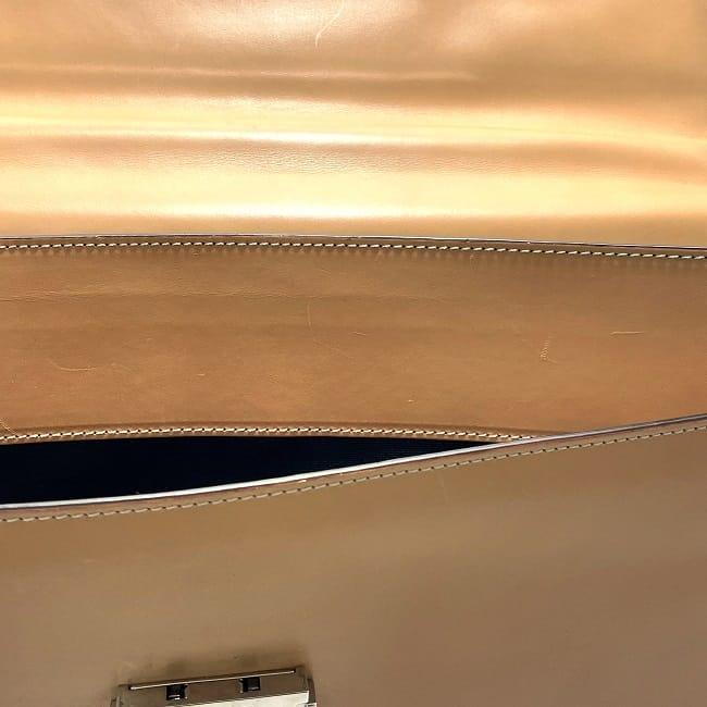 詳細説明:底部の角に擦れ、コバに剥がれ、表面の所々に小傷や汚れや皺、金具に傷など使用感はございますが比較的綺麗なお品物です。