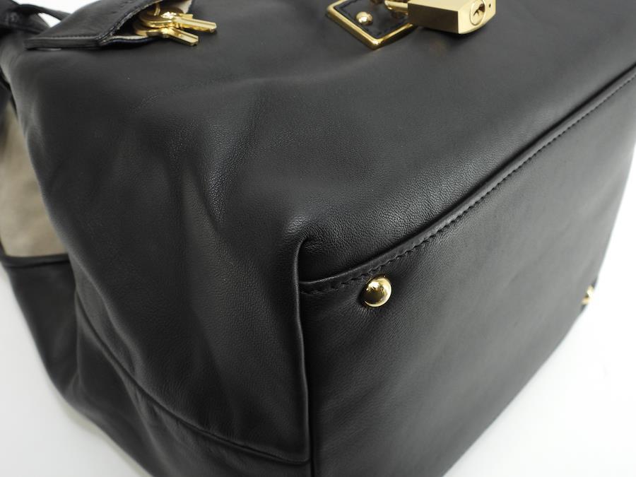 情報 : ボディは柔らかいレザーで仕上げられておりますので、薄スレ・押し痕が少しございますが、目立つダメージもなく綺麗です。底部角にスレはございません。ハンドルはスレ・汚れ・弱りもなく状態は良いです。バッグ内は気になるダメージもなく綺麗です。金具部分は薄スレ・小傷・腐食が少しございますが、全体的に綺麗です。