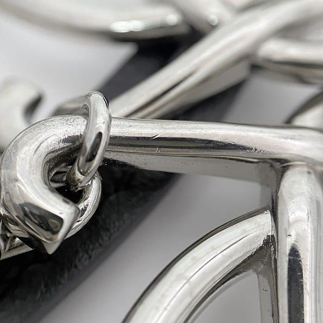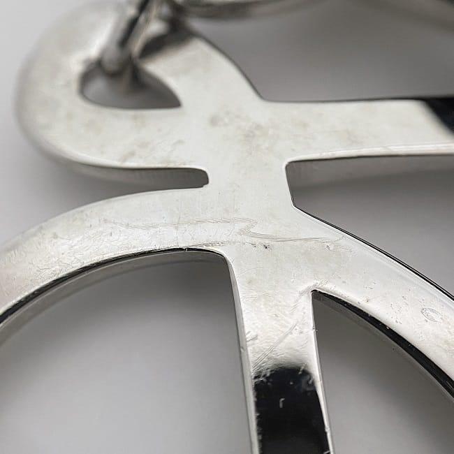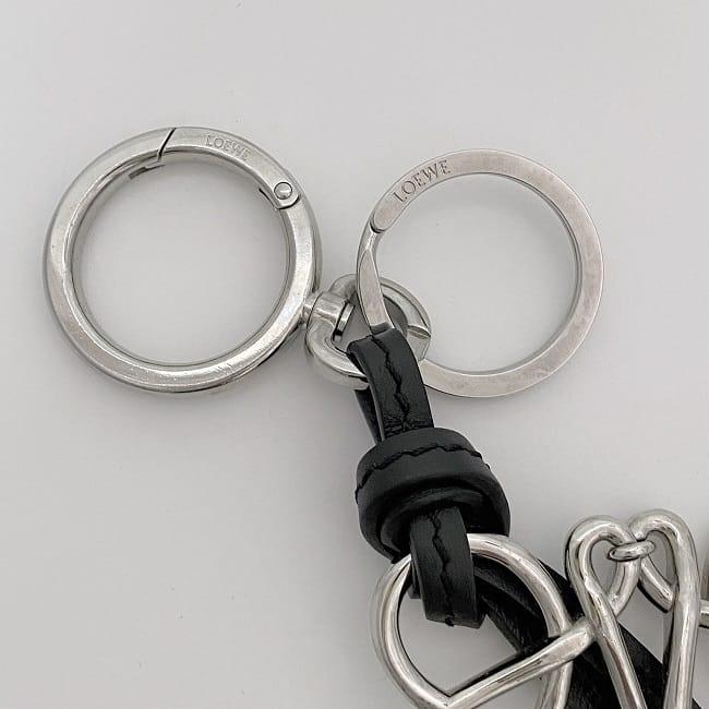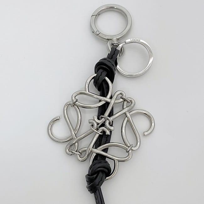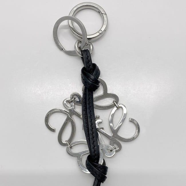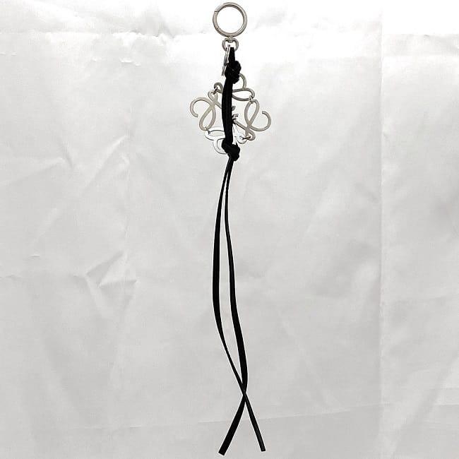 ロエベ チャーム f-23322 シルバー ブラック アナグラム C821232X02 美品 メタル レザー 中古 LOEWE バッグチャーム 黒 銀 キーホルダー アクセサリー ロゴ メンズ レディース 革 ロゴ金具 定番 人気 シルバー金具 シンプル ワンポイント ブランド 本物 鑑定済