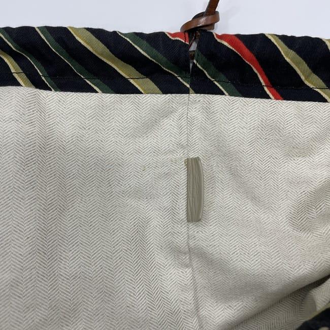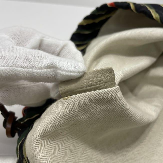 詳細説明 | 上部の紐縁に擦れ、表面に僅かな薄汚れ、内側タグ付近に汚れなど使用感はございますが、比較的綺麗なお品物です。 |