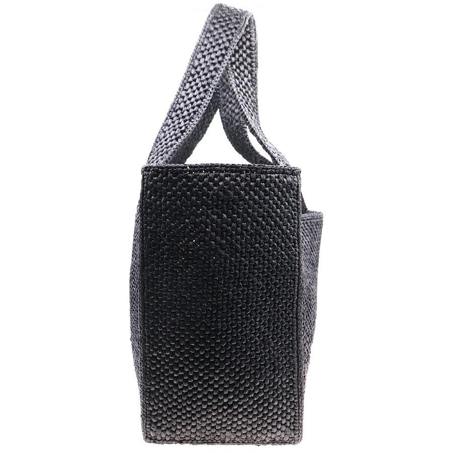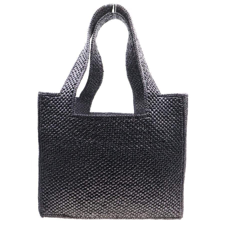 [モデル]フォントバッグ ブラック ラフィア×レザー ミディアム ハンドバッグ ショルダーバッグ