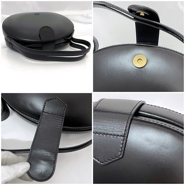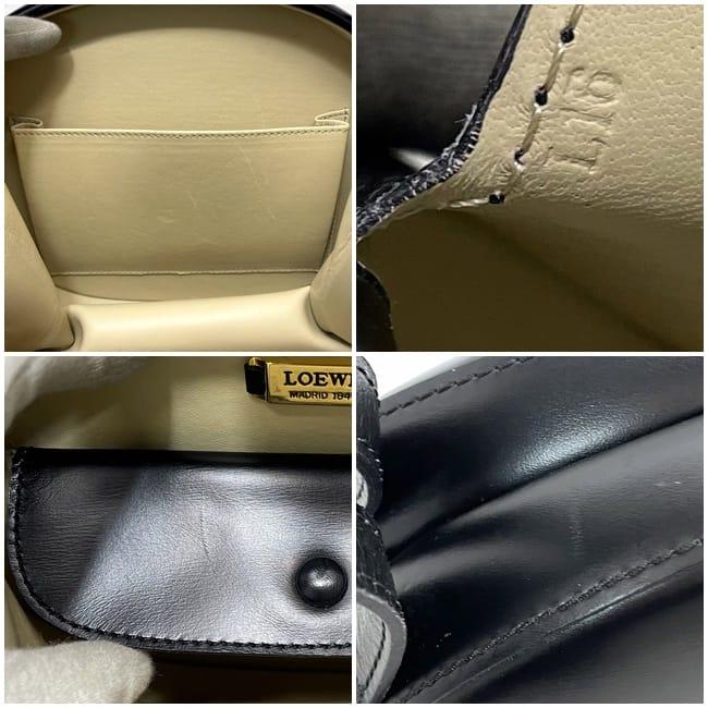 ロエベ ハンドバッグ f-22809 ブラック アナグラム 美品 カーフ レザー 中古 LOEWE ヴィンテージ レア 黒 自立 丸 ラウンド 本革 シンプル レディース ワンポイント ロゴ マグネット 丸型バッグ 冠婚葬祭 ブランド 本物 鑑定済み