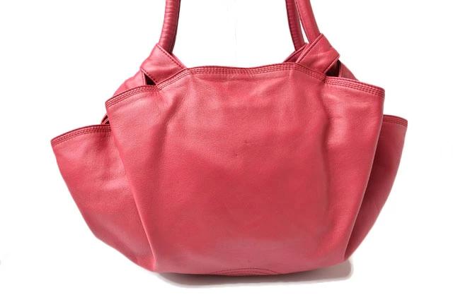 ロエベより、とても手触りのよい、シープスキン素材のハンドバッグです。ロエベ伝統の高級感を漂わせます。独特なデザインで、セレブの間で、人気の高い舟形トートバッグ 「アイレ」。前面には大きなロゴマーク、が可愛くデザインされております。このバッグ一つでワンランク上のセレブカジュアルに!