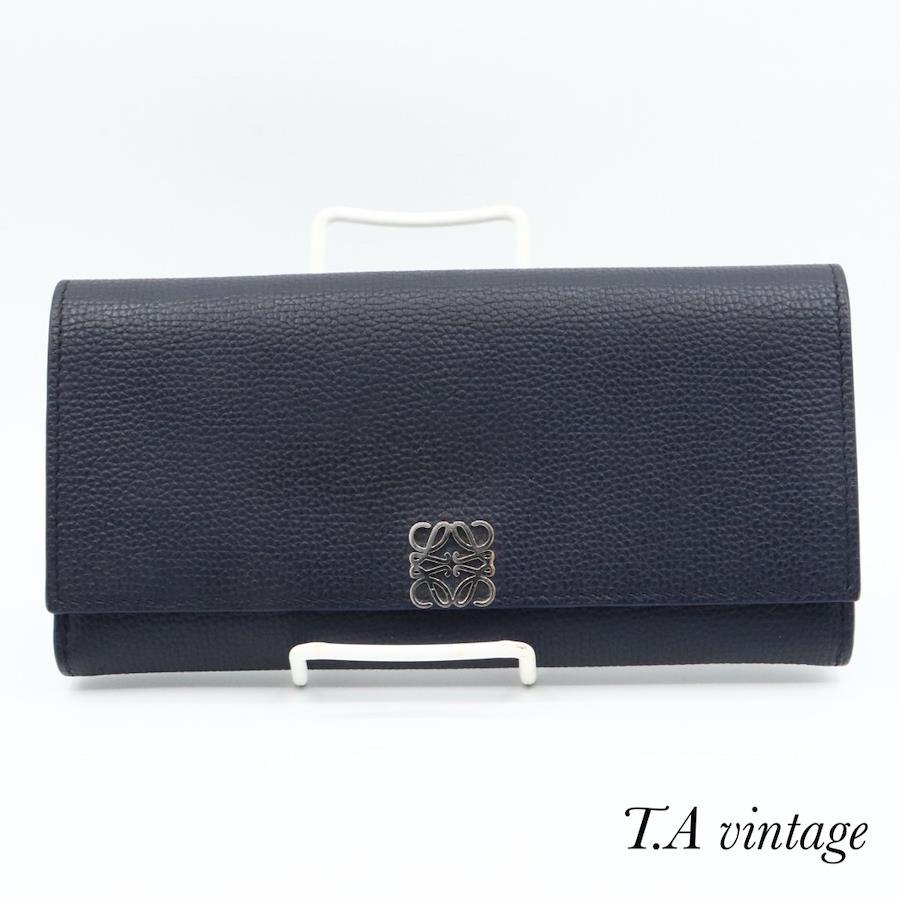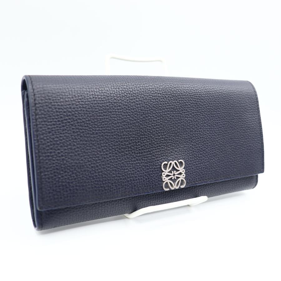 品名 ロエベ アナグラム レザー 長財布 ネイビー シルバー金具