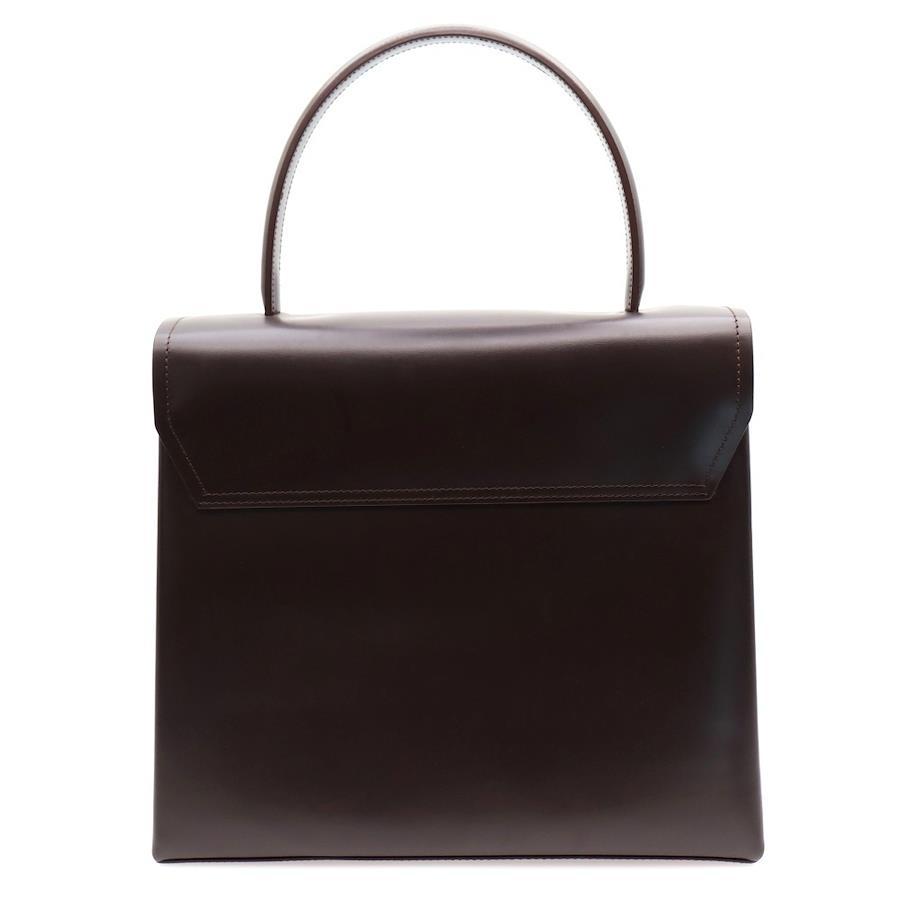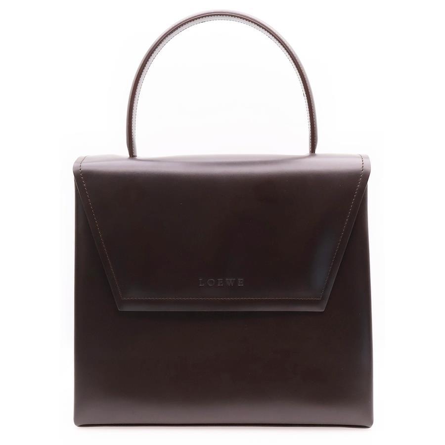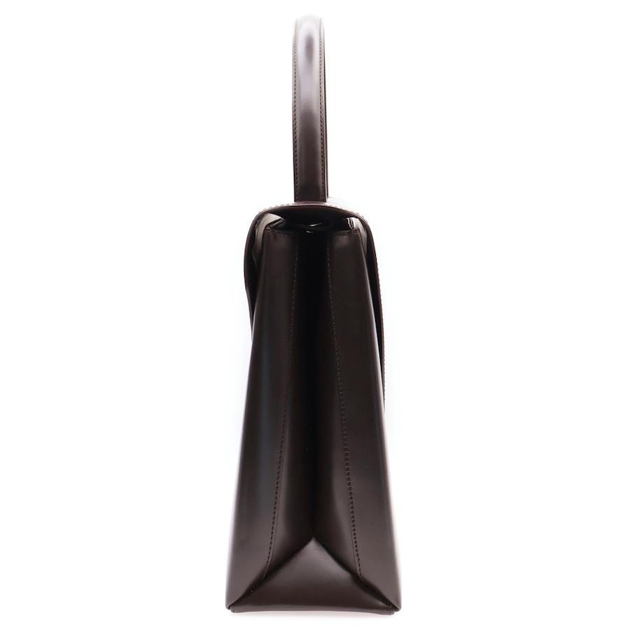 [モデル]ロゴ刻印 レザー スクエア 2WAY ハンド ショルダーバッグ ブラウン