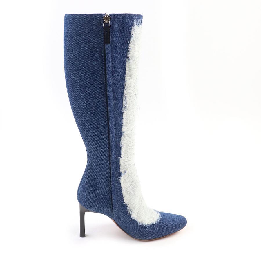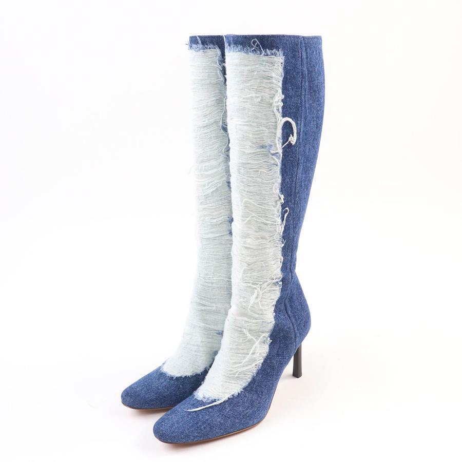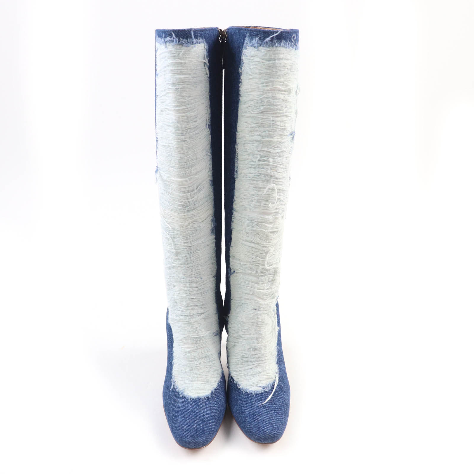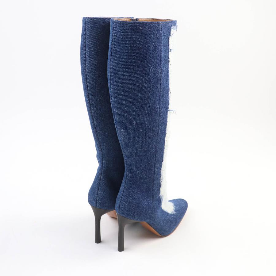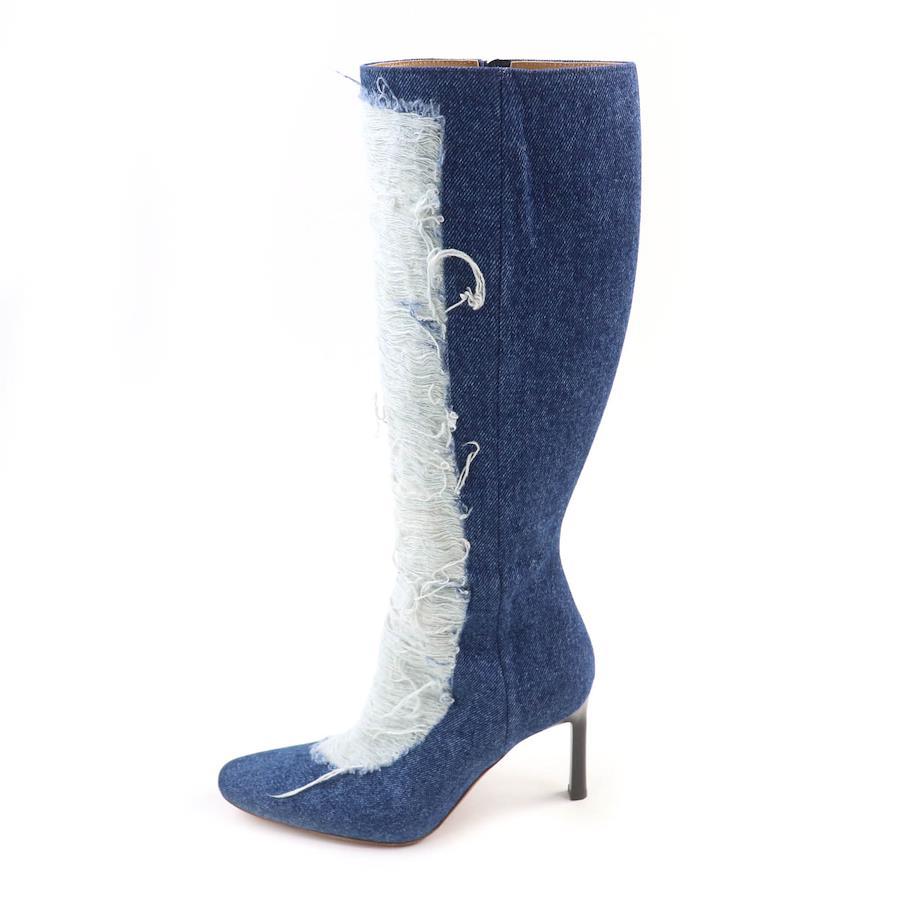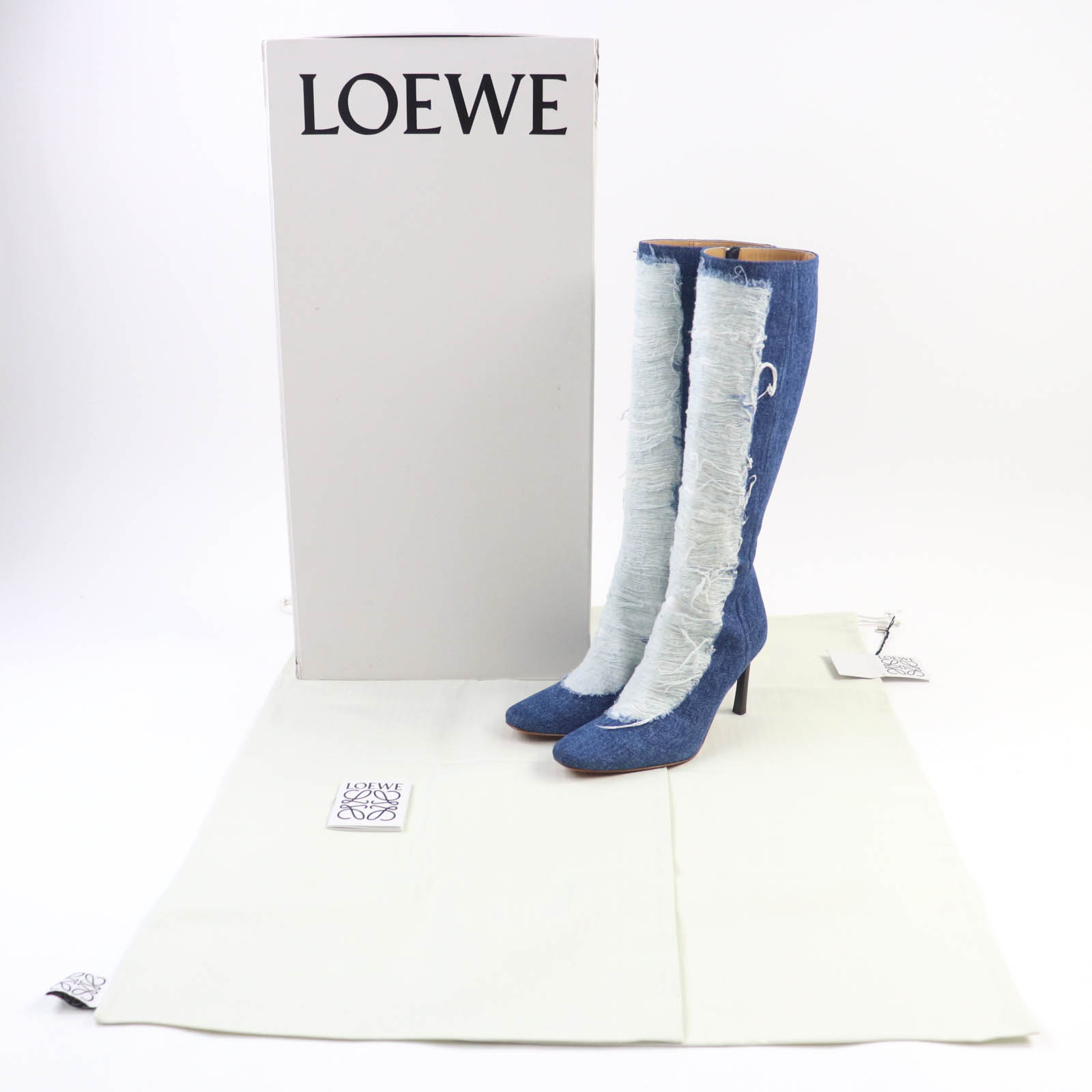 LOEWE Long Boots in Distressed Ripped Indigo Denim (L815285X36)