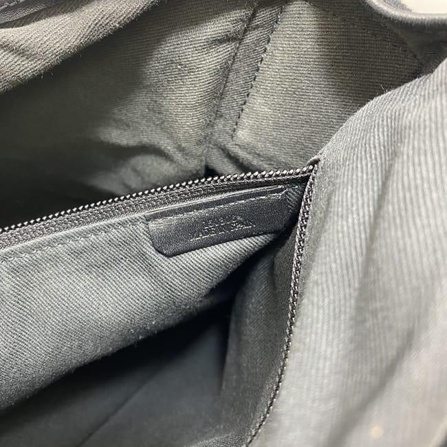 詳細説明:底部の角に擦れ、背面上部やショルダー紐に擦れ、金具に傷やくすみ、レザー部分に傷、フラップ内側に薄汚れや皺、表面や内側や底面に汚れ、表面に色褪せなど使用感は強くございますがまだまだお使いいただけるお品物です。