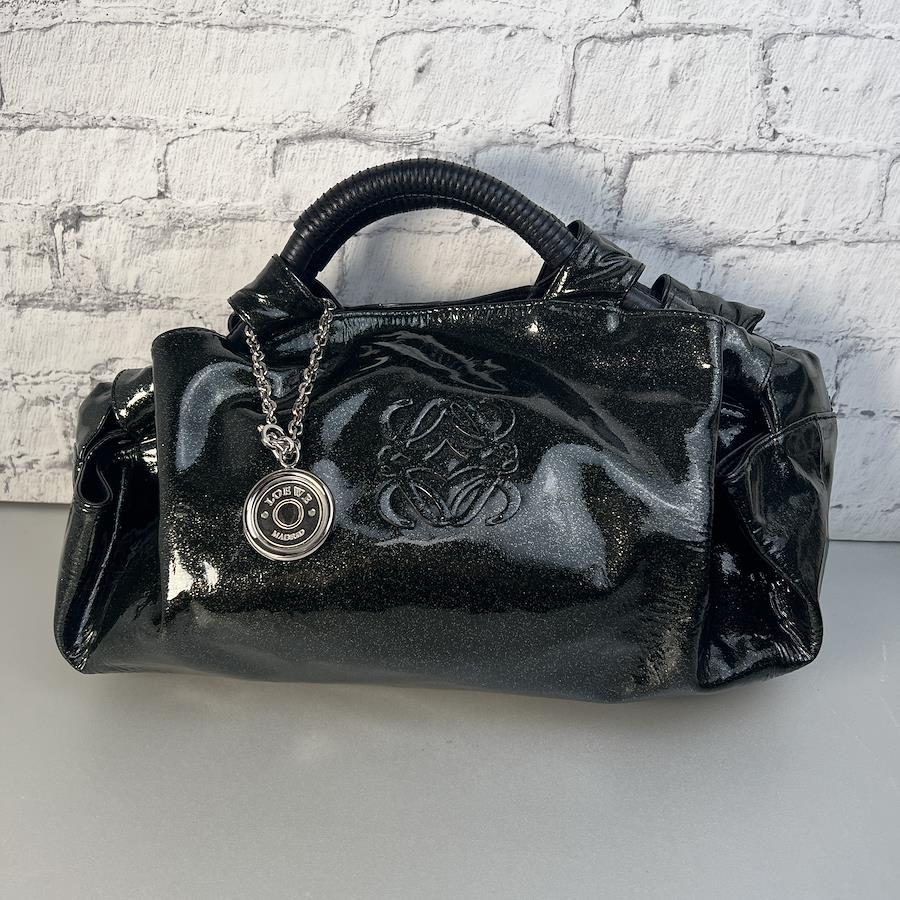 【アイテム】良品 LOEWE ロエベ ナッパアイレ エナメル/パテントレザー ハンドバッグ ブラック A-8756