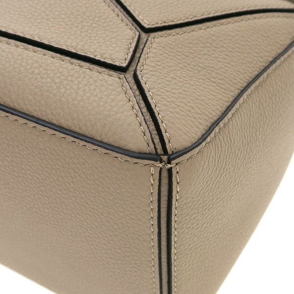 ロエベ・パズルバッグ スモール(ソフトグレインカーフ)のご紹介です☆ パズルバッグは、クリエイティブディレクターのジョナサン・アンダーソンがロエベで初めてデザインしたバッグとなり、パズルバッグの独創的なデザインは、精確なカッティング技術が作り出す幾何学的なラインと四方体のフォルムから成り立ちます!今回入荷しましたのはスモールサイズ、カラーは人気の『サンド』です!コーディネートに取り入れ易く、ビジネスシーンにもマッチするシックな色味は非常に人気が高く、付属でショルダーストラップが付いており、ハンド・ショルダーと使え、あらゆるスタイルにフィット致します♪少々の型崩れ、表面と内側の薄汚れ、持ち手や角等のスレが少々、内ポケット内の接着シミ、金具の小傷くすみが見受けられますが使用感は少なく、まだまだキレイ目な商品です!即売れ必死の人気カラーとなりますのでお早めにどうぞ!!