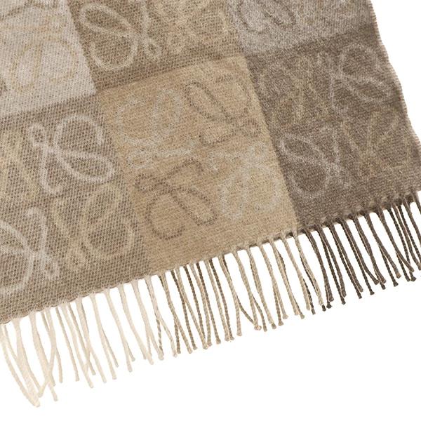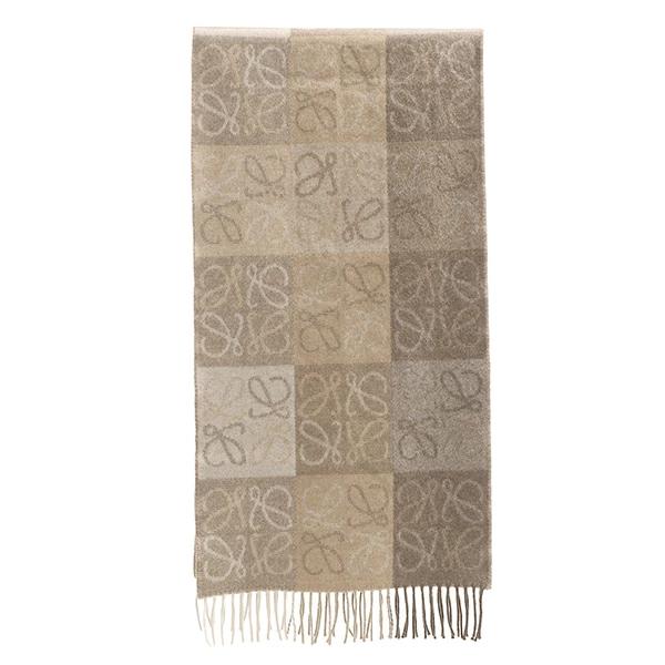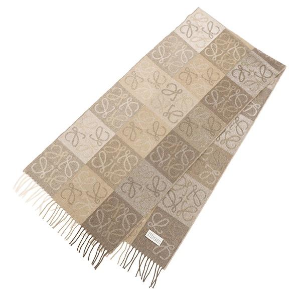 ロエベ LOEWE マフラー チェッカーボード スカーフ ウール&カシミヤ アナグラム ウール カシミヤ ベージュ ジャガード ストール F810487X17 レディース定番 人気 美品 【中古】