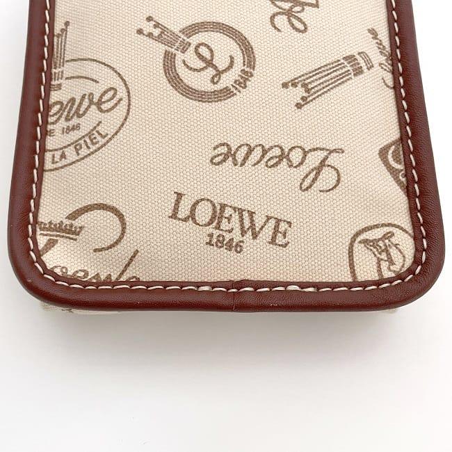 ロエベ ショルダーバッグ ec-23670 ベージュ ブラウン アナグラム 160周年 美品 キャンバス レザー スエード 中古 290606 LOEWE クロスボディ サコッシュ フラップ ミニバッグ ヴィンテージ ピンバッチ レディース メンズ ミニ レア ブランド 本物 鑑定済み