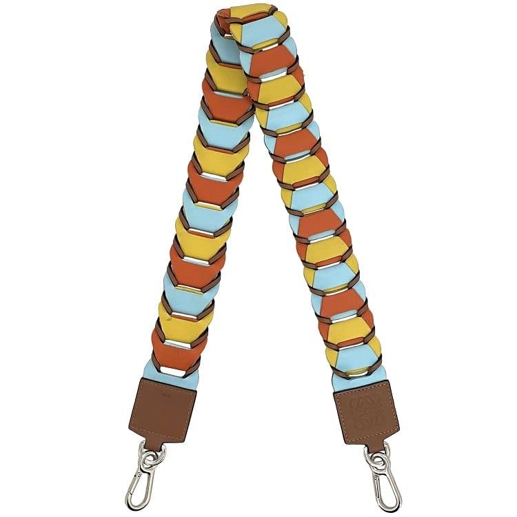 ロエベ ショルダーストラップ ec-22874 ブラウン イエロー オレンジ ブルー マルチカラー アナグラム 美品 レザー 中古 412110 LOEWE カラフル 後付け 肩掛け ショルダー 紐 ストラップ ショルダーのみ 本革 編み込み ショルダーバッグ ブランド 本物 鑑定済み