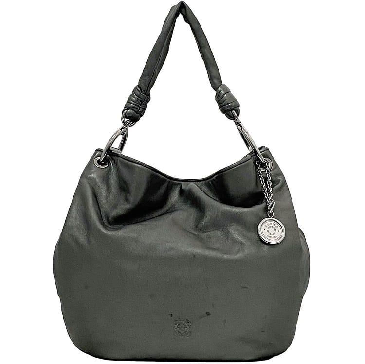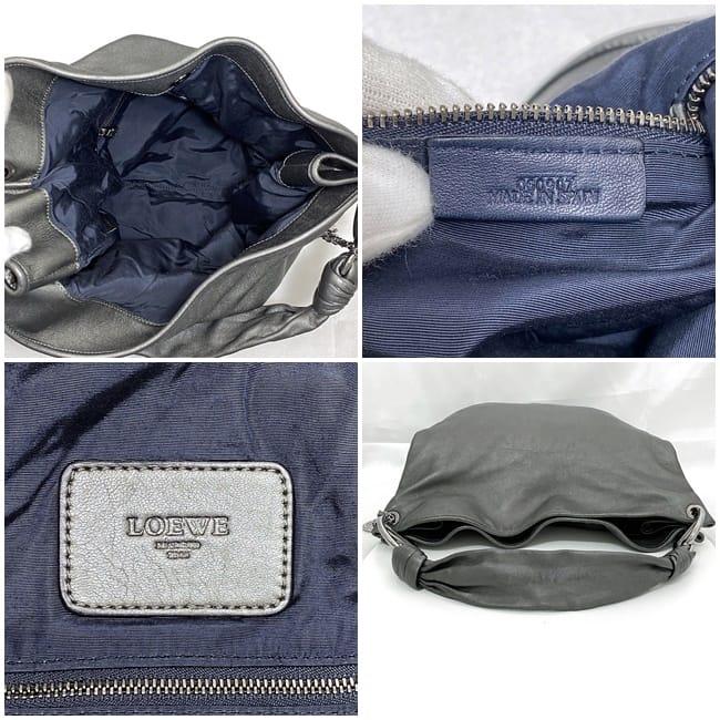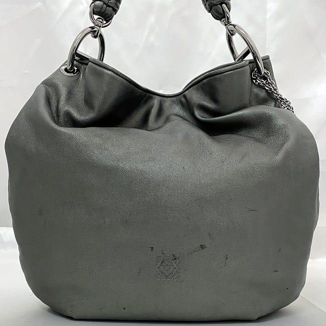 ロエベ トートバッグ ec-23409 メタリック グレー アナグラム 美品 レザー 中古 060907 LOEWE 肩掛け チャーム ヴィンテージ ソフトレザー ナッパレザー レオディース 肩掛け 定番 人気 本革 シンプル チャーム付 ブランド 本物 鑑定済み