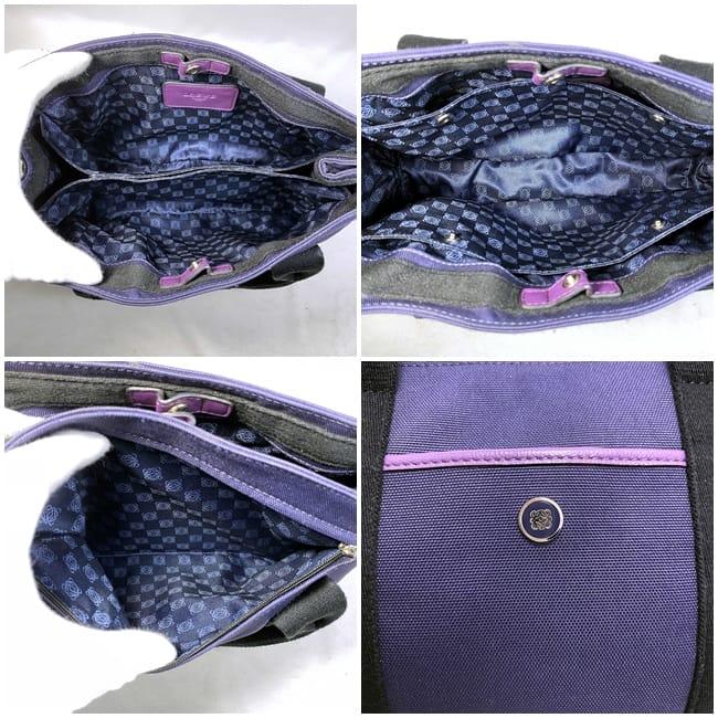 LOEWE Tote Bag Purple Anagram Light Tote Canvas Leather Used LOEWE One Point Logo Hook Classic Popular Women Ladies