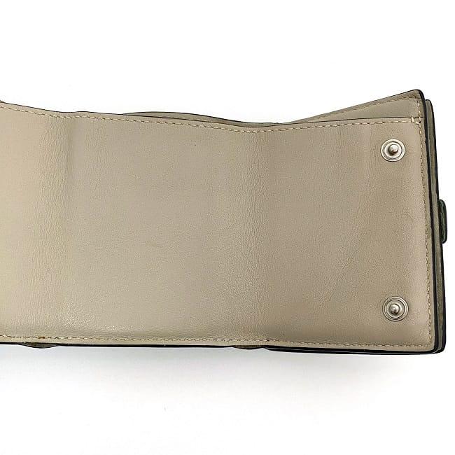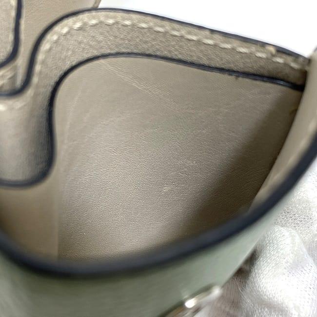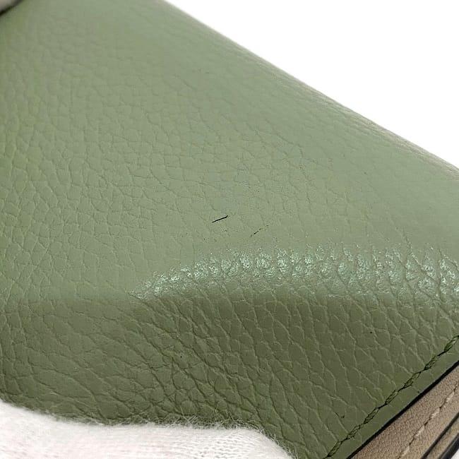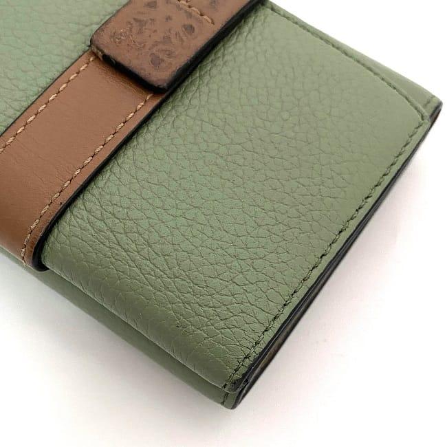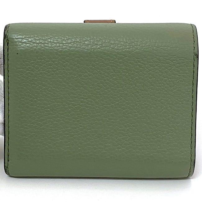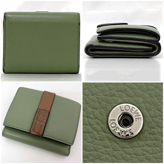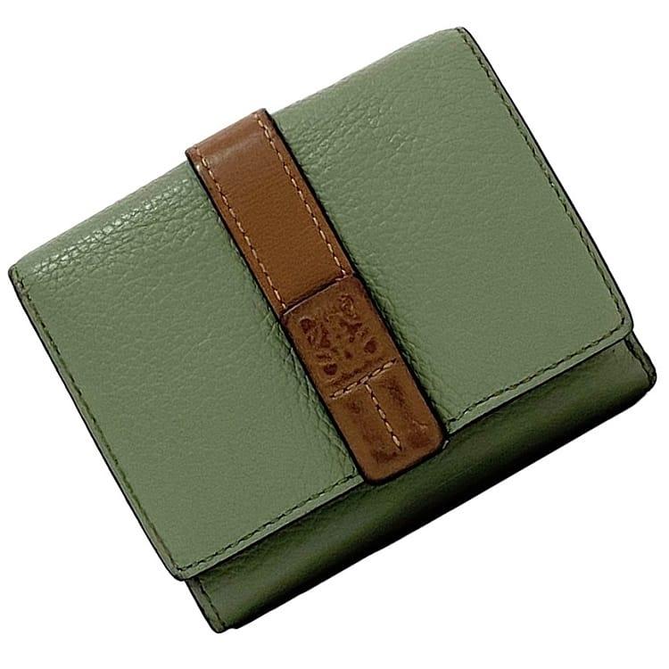 ロエベ 三つ折り 財布 ec-23393 グリーン アナグラム コンパクト レザー 中古 062043 LOEWE ホック フラップ 折り財布 ワンポイント ロゴ 緑 茶色 グレインレザー ホック 訳あり ヴィンテージ メンズ レディース ミニ財布 ウォレット ミニ ブランド 本物 鑑定済