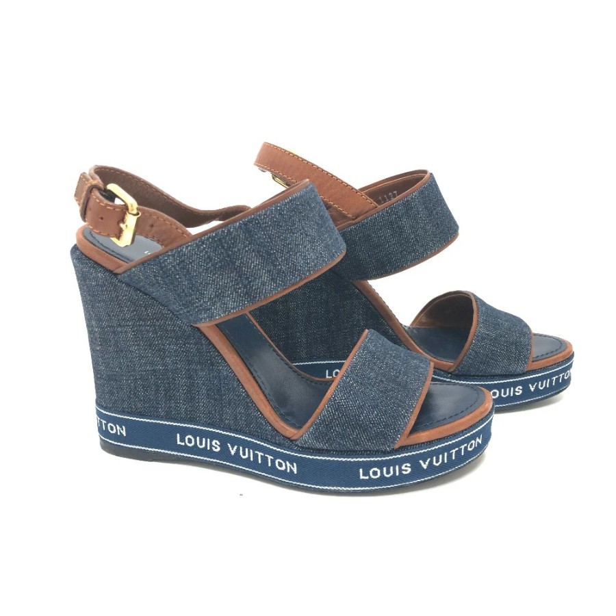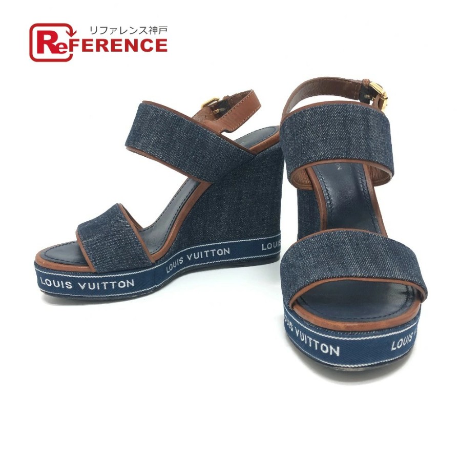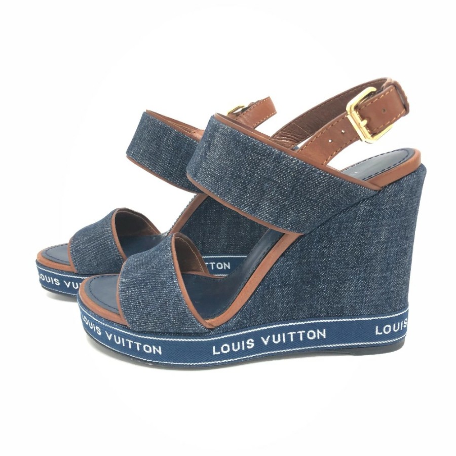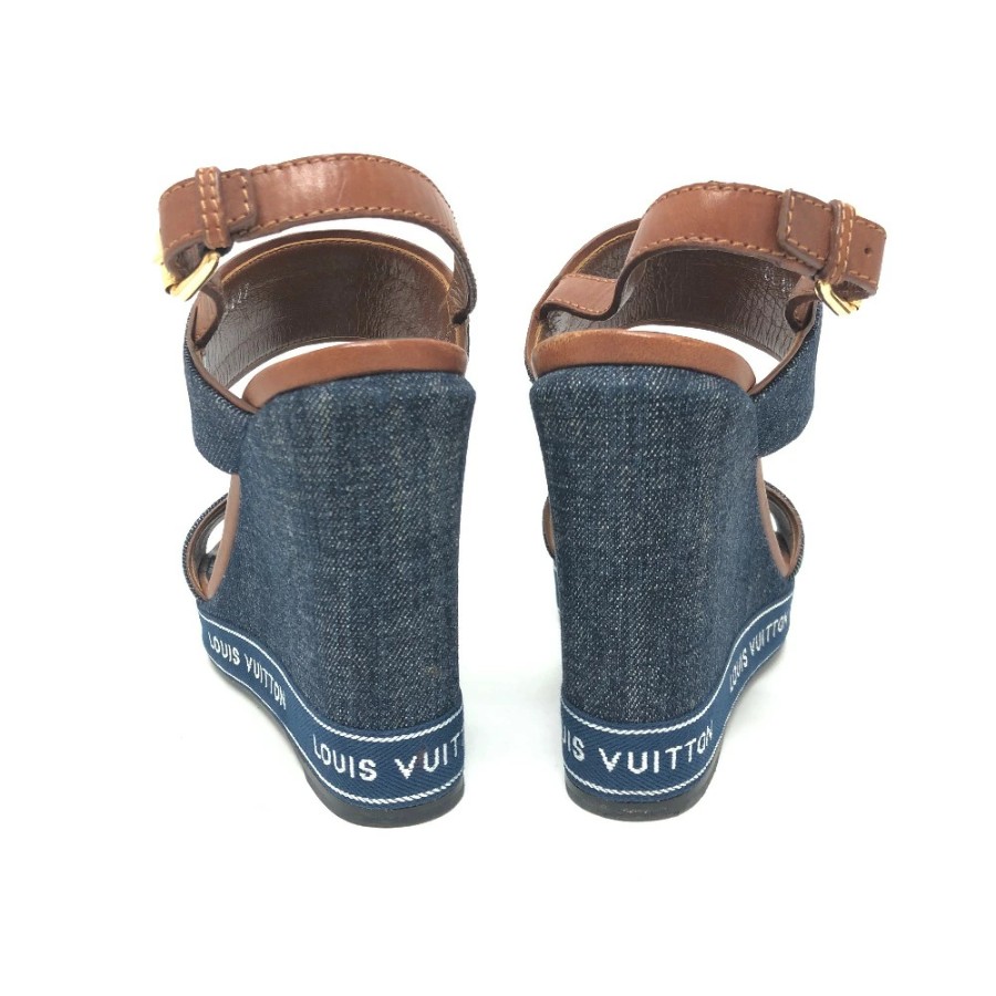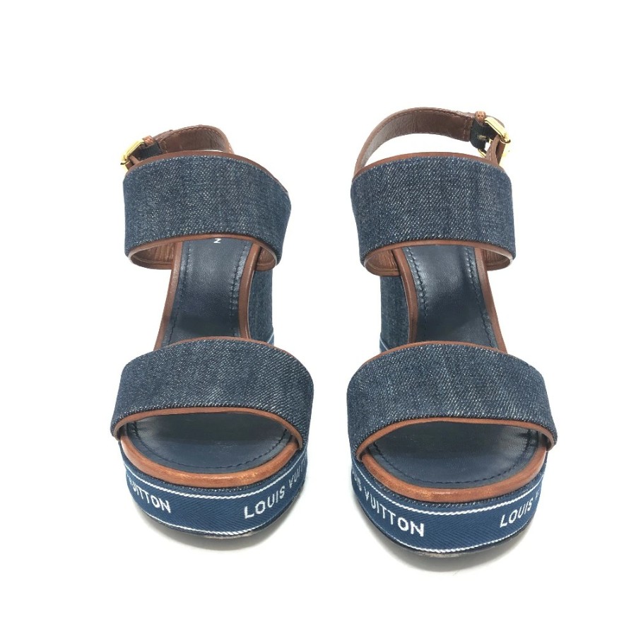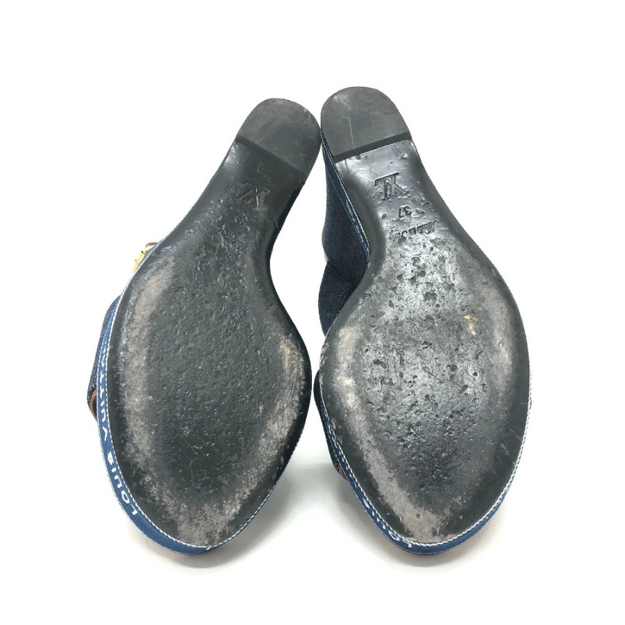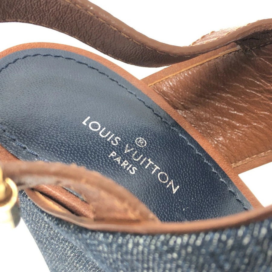 LOUIS VUITTON 1A67V1 Logo Espadrille Sandals, Denim Sandals, Women's, Blue [Used]