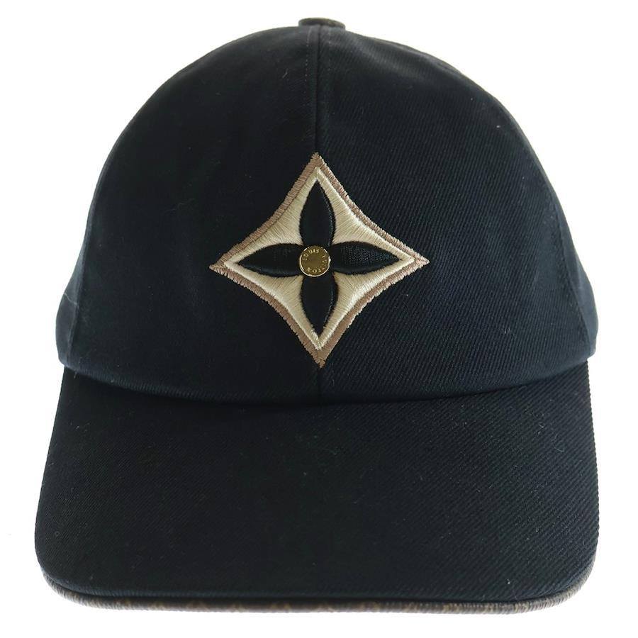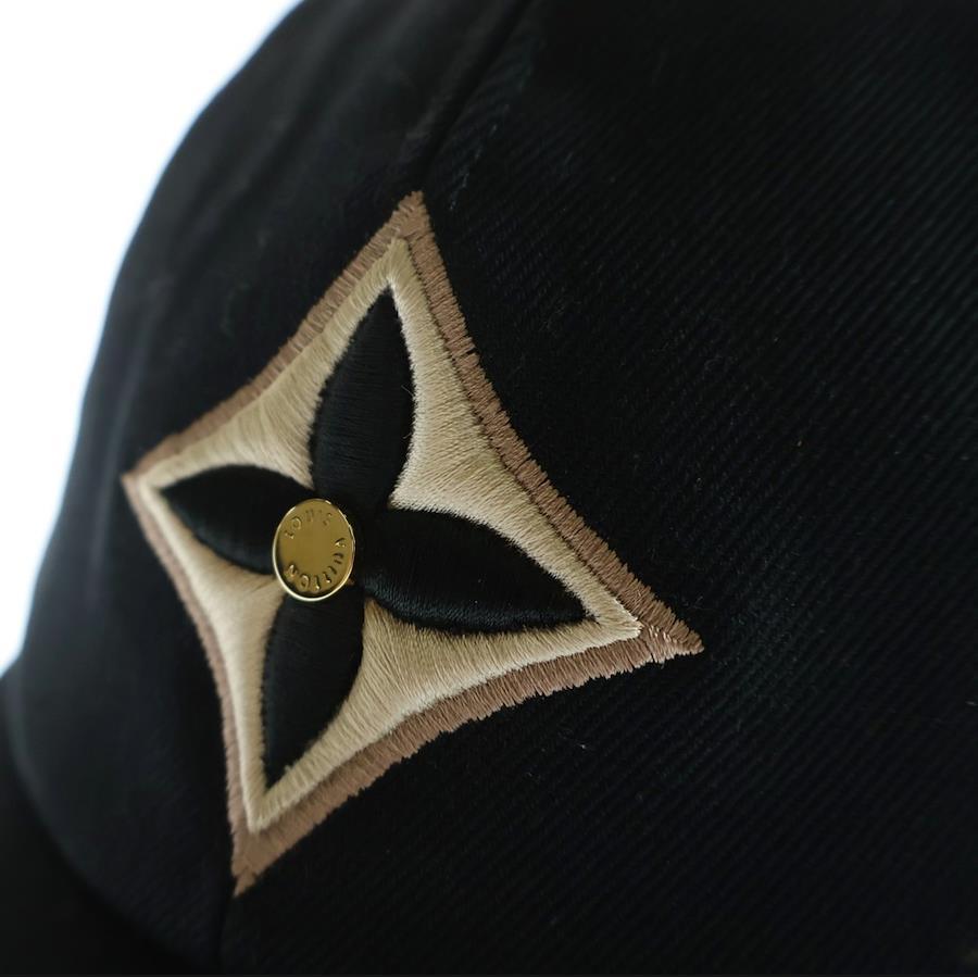 [モデル]22AW LVデー モノグラムフラワー ロゴ刺繍 PVC レザー コットン 6パネル ベースボールキャップ ゴールド金具 ブラック/ブラウン M77807