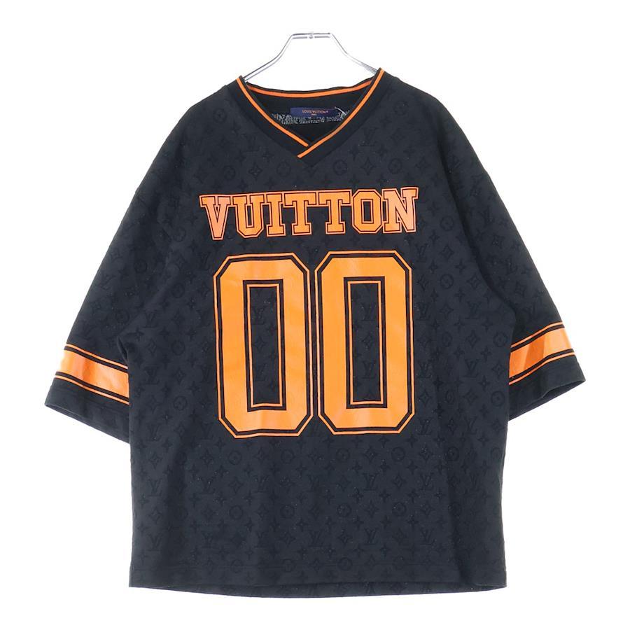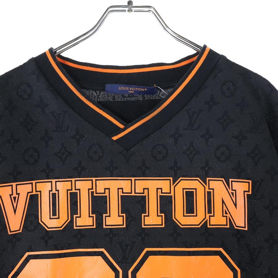 [モデル]23SS モノグラムスポーティVネックTシャツ ロゴプリントVネック半袖Tシャツ RM231 VV4 HOY67W ブラック/オレンジ