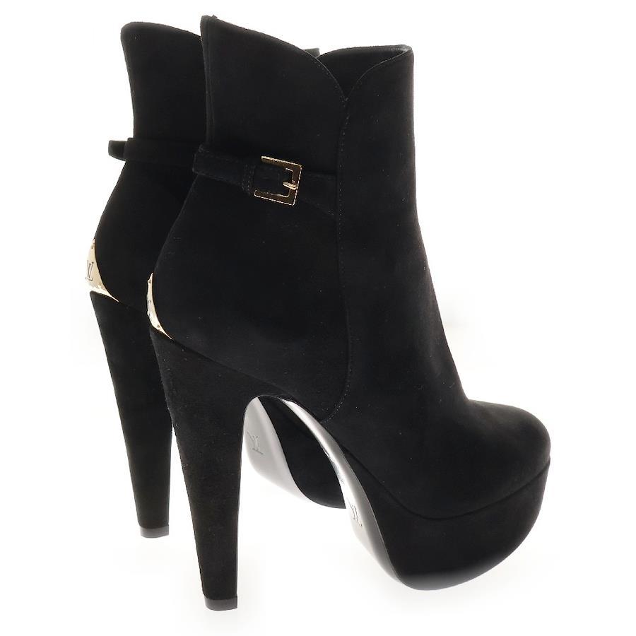 [モデル]アフターグロー・ライン ハイヒールブーツ ブラック シューズ スウェード NL0231 レディース