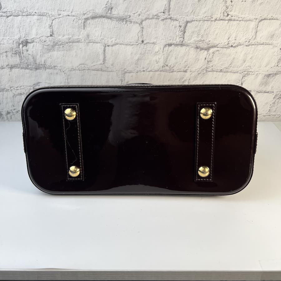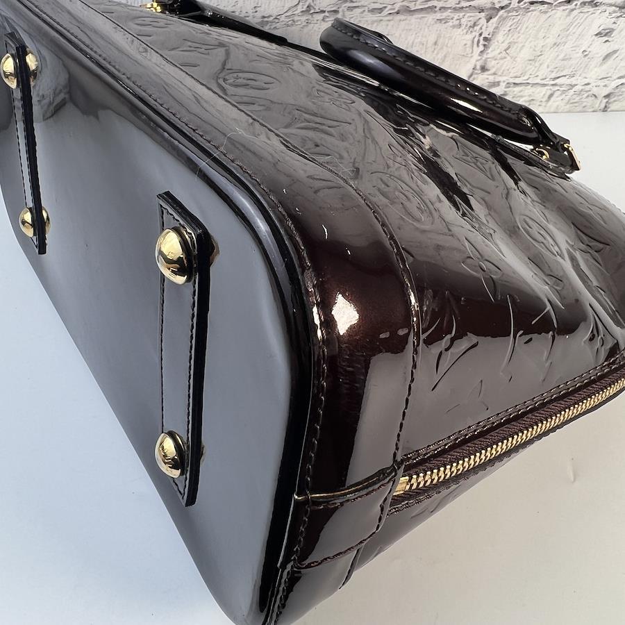 良品 LOUIS VUITTON ルイヴィトン アルマ モノグラム クロシェット カギ パドロック エナメル/パテントレザー ハンドバッグ ブラウン A-8880