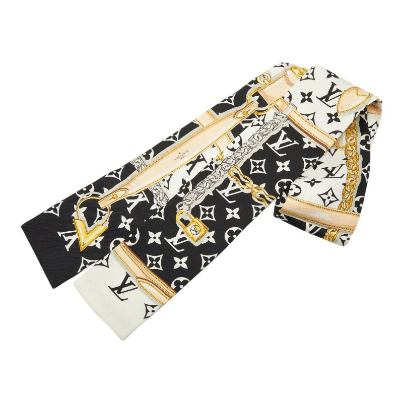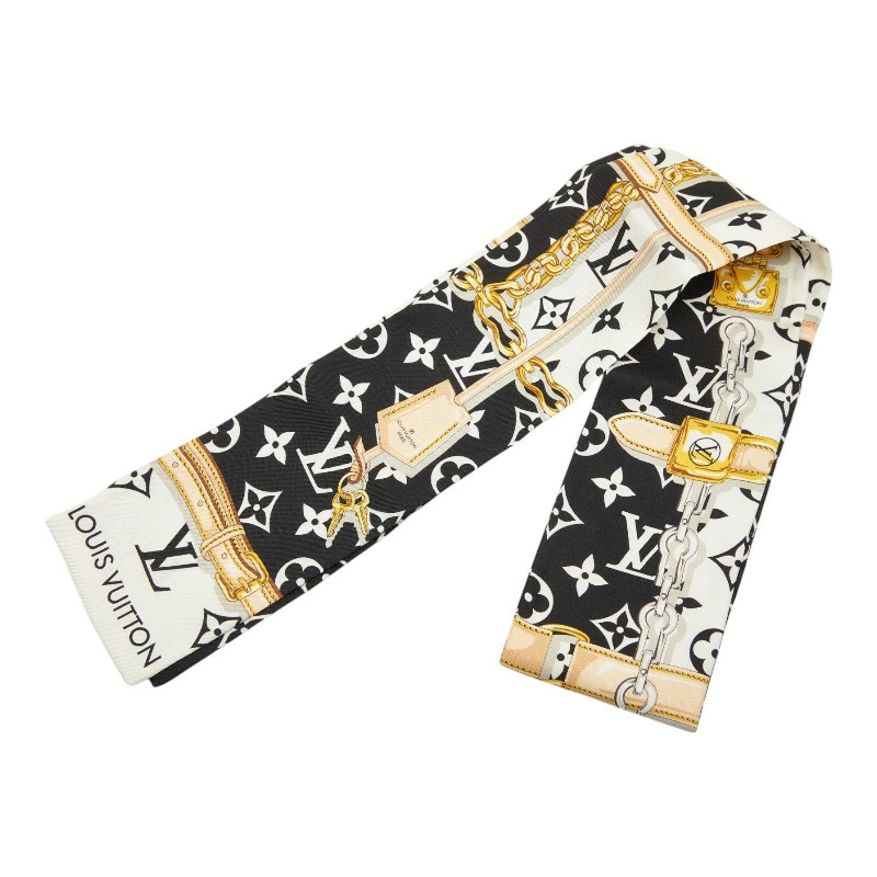 - ルイ ヴィトン スカーフ ブラック ホワイト シルク レディース LOUIS VUITTON 【中古】