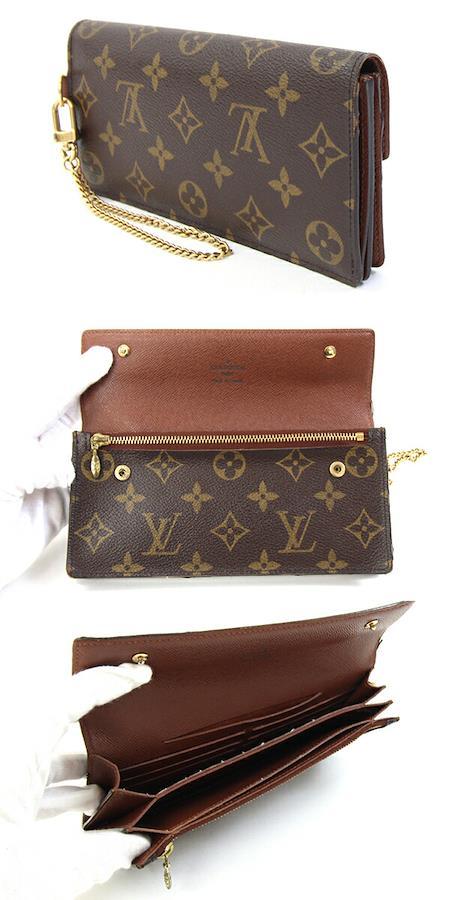 ルイヴィトン二つ折り長財布モノグラムM58808ポルトフォイユアコルディオン中古ロングウォレットウォレットチェーン付きメンズ男性LOUISVUITTON