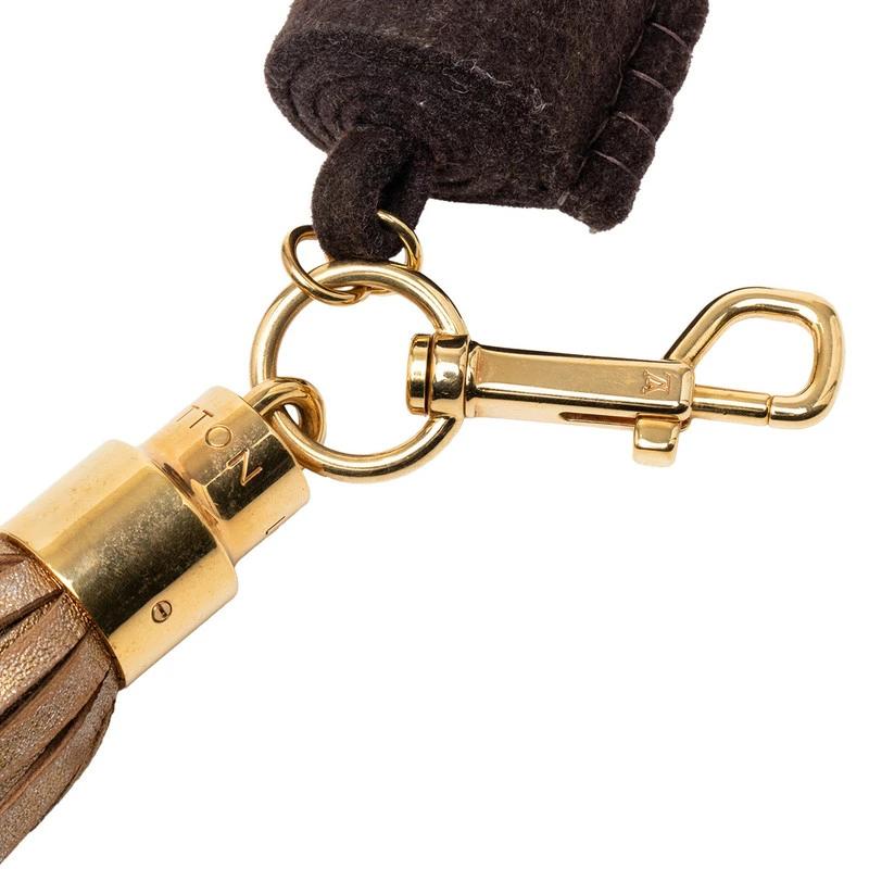 - ルイ ヴィトン バッグチャーム キーホルダー M66165 ゴールド ブラウン レザー フェルト レディース LOUIS VUITTON 【中古】