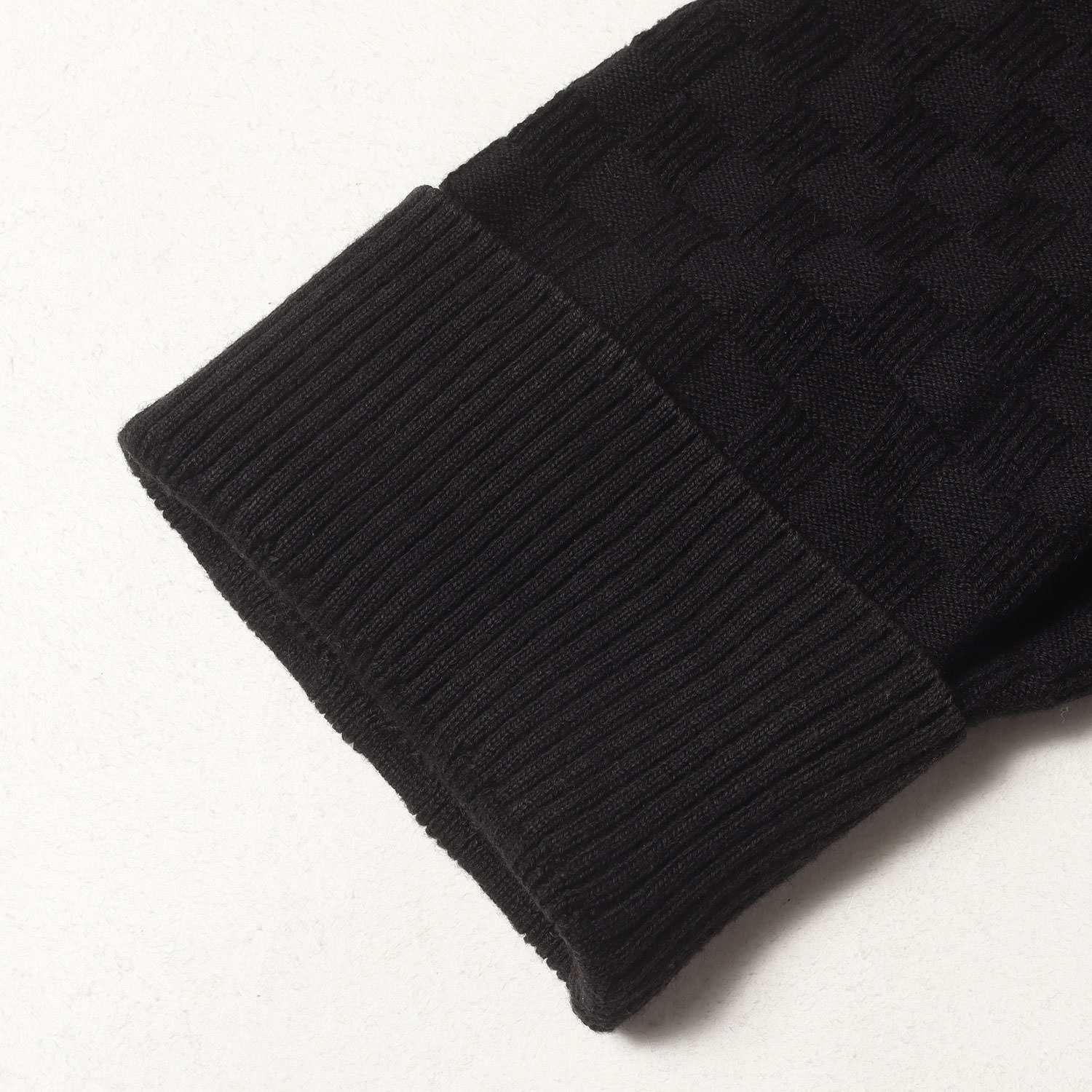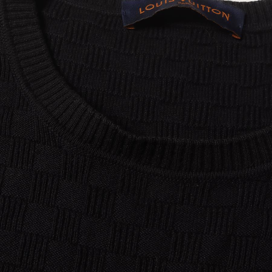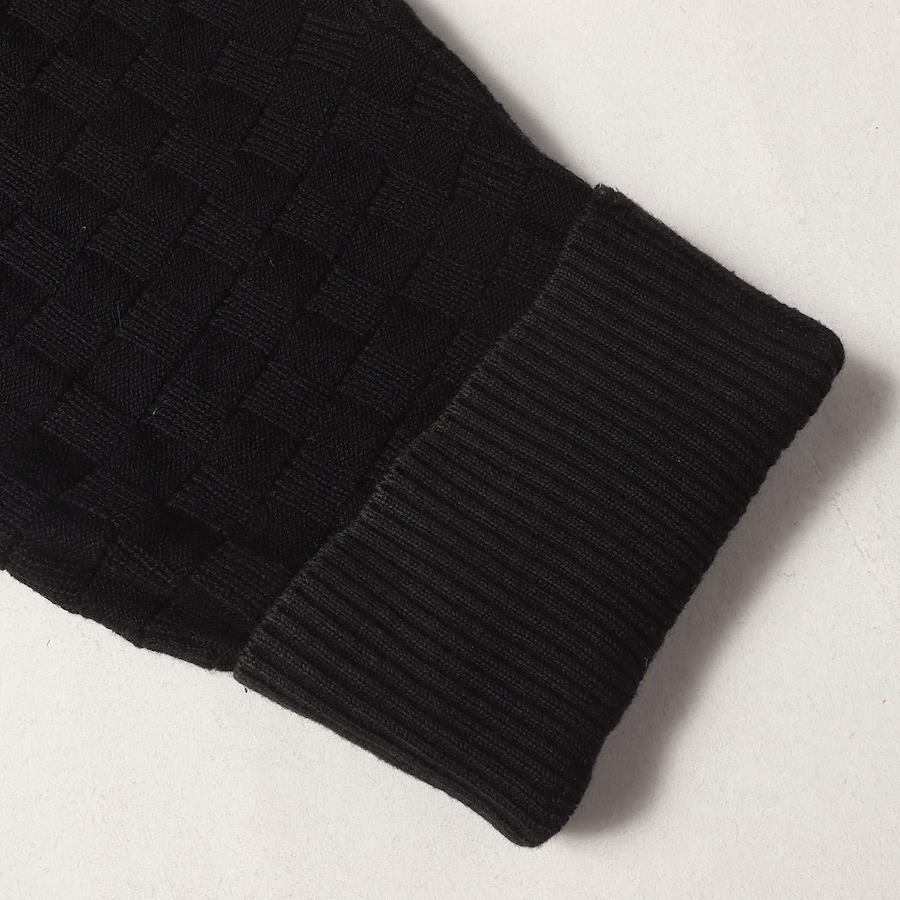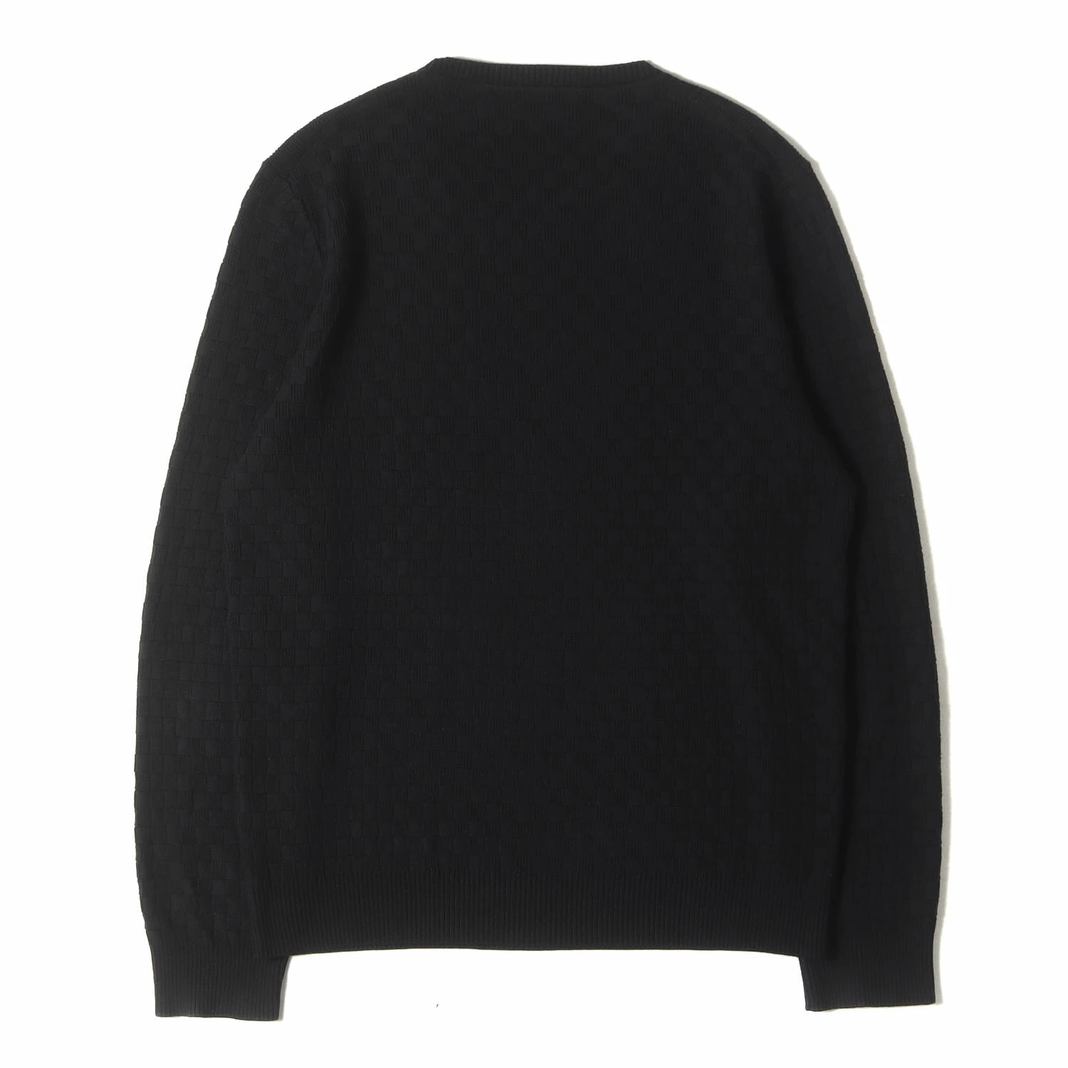 | 商品説明 | コットン/ウール混紡生地を使用し、ジャガード織りのダミエ柄で仕上げたクルーネックハイゲージニットです。身頃裾にあしらった革パッチがポイントです。 |