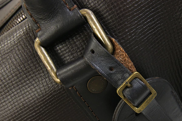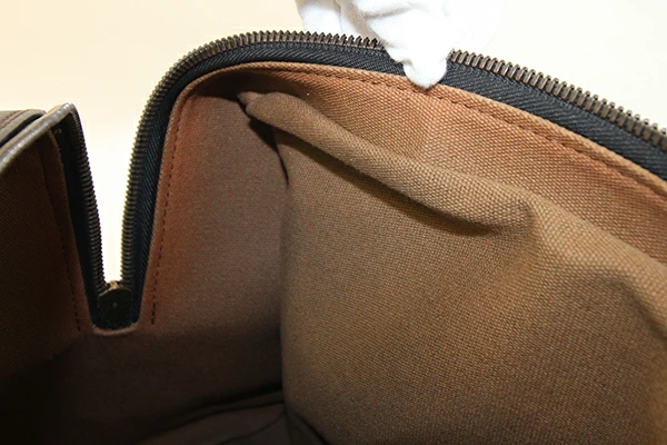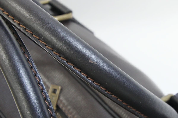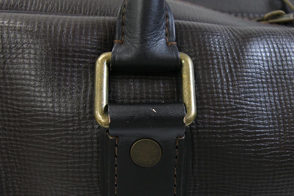 | 状態 | 外側:所々小キズ・スレあり。角やフチ周りにスリ減り・色落ちあり。ファスナー生地にネームタグのストラップ裏に毛羽立ちあり。 内側:スレ、薄汚れあり。入口フチステッチ周りに変色あり。 金具:小キズ、クスミあり。カデナに変色あり。 ※ネームタグに「EMI」刻印あり。 |