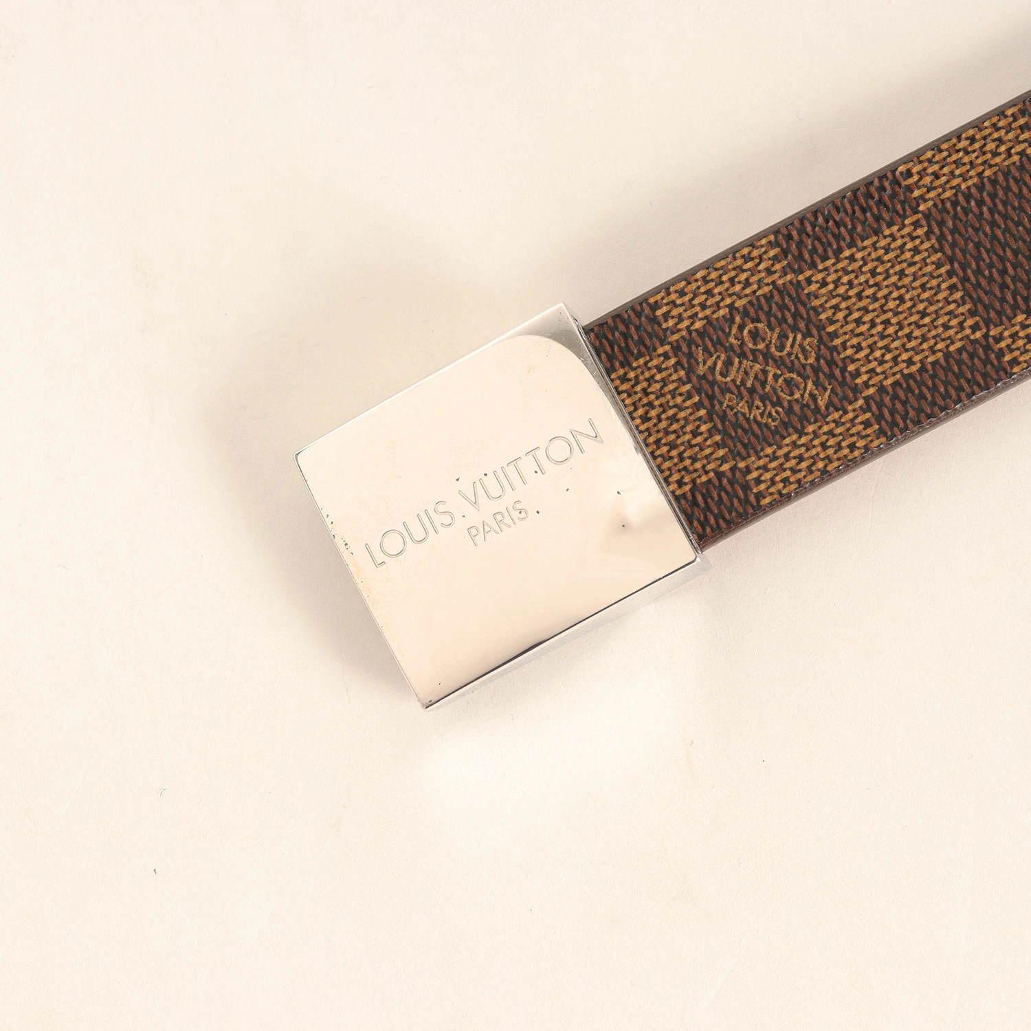 | 商品説明 | ・ダミエデザイン ・裏面にバックレザー ・ロゴ刻印バックル ・穴数5 |