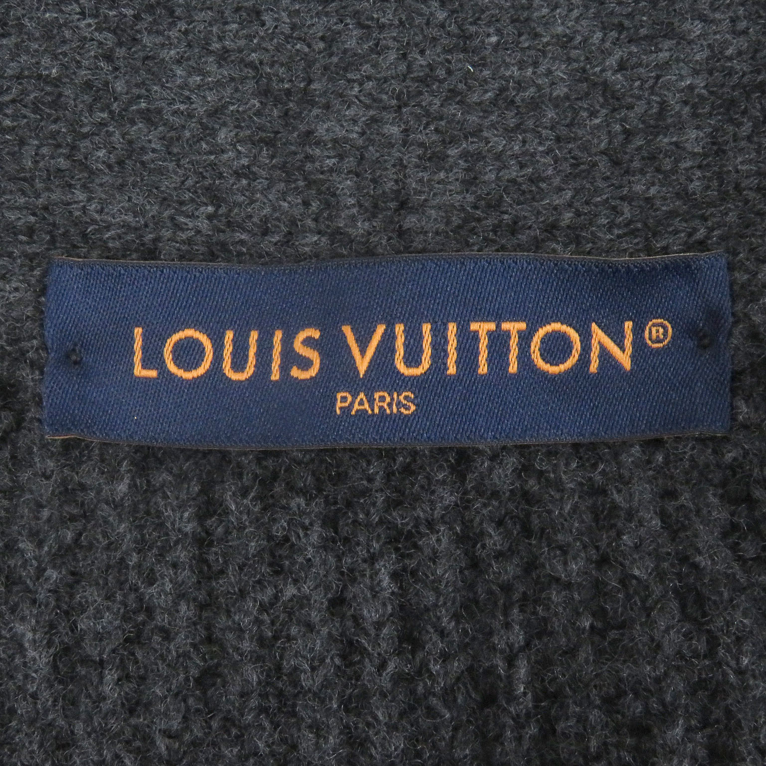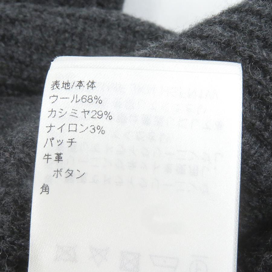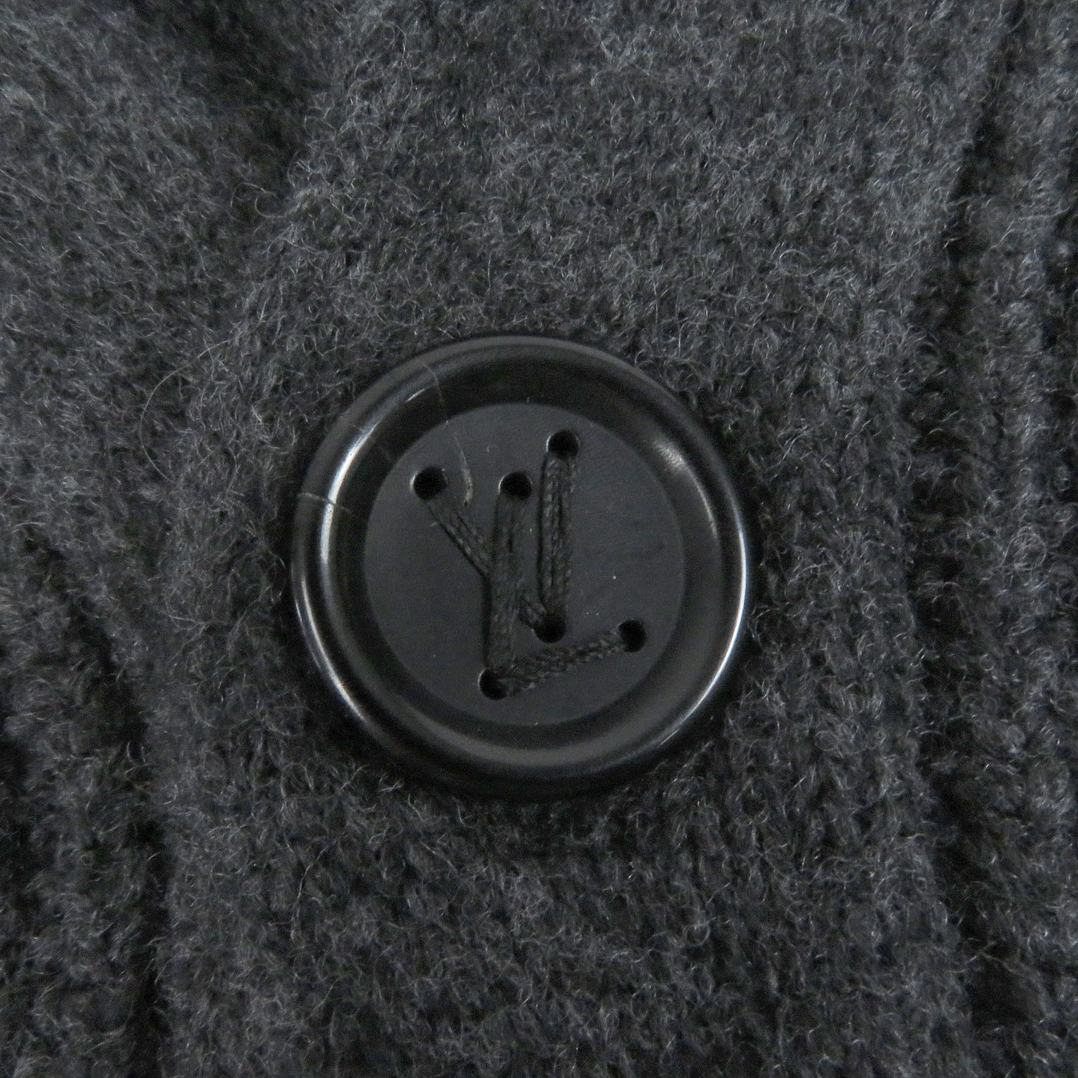 LOUIS VUITTON Cardigan Shawl Collar Logo Leather Patch Gray Wool Cashmere