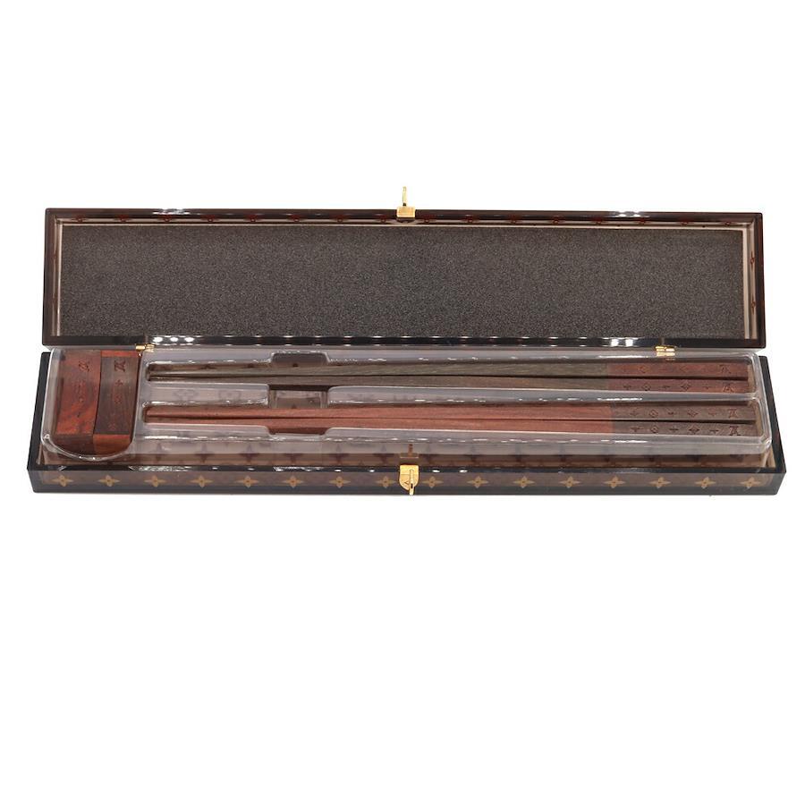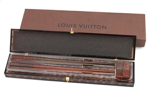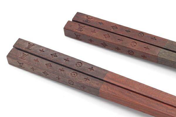 ルイヴィトンチョップスティックセット25周年記念品ブラウンローズウッド中古ノベルティ非売品希少箸LOUISVUITTON