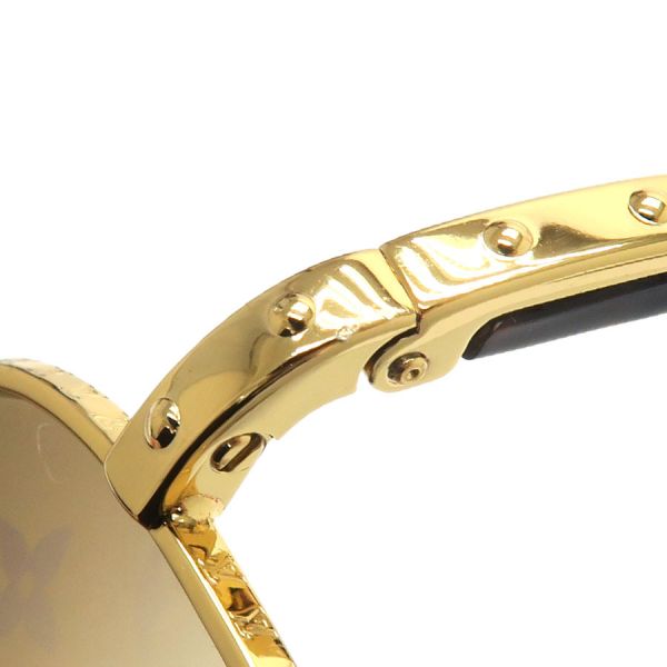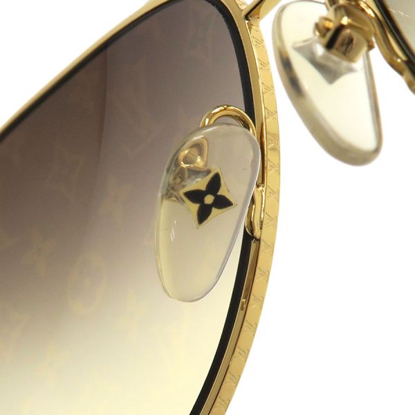 ■採寸#58□15 135 レンズ:5×5.6cm レンズ間:1.6cm つるの長さ:13cm■素材表記なし■コメントルイ・ヴィトンからコンスピラシオン・パイロットサングラスが入荷しました!メタル×プラスチックの高級感のあるフレーム構造で、クラシックなティアドロップ型のレンズにはモノグラム柄がデザインされた、ヴィトンらしさ全開の一品です☆全体に僅かなスレ感や拭き取りで改善する程度のくすみ、刻印にやや掠れ、左側ヒンジのフチや先セル部分にスレキズが見受けられる為Bランクでのご紹介となりました。着用時に目立つダメージや汚れはなく、まだまだ問題なくご着用いただけるお品です◎