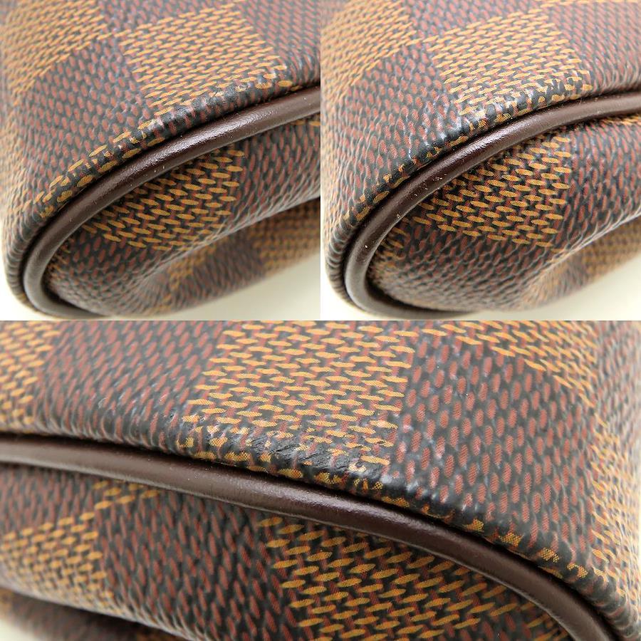 [外・表面] 細かなスレ [外・形状] 凹み [外・角] スレ [外・縁] スレ [外側] ショルダーストラップのフック金具の内側摩耗 [金具部分] キズ / 一部剥がれ [内側] スレ / 汚れ [ファスナー周り] 剥がれ