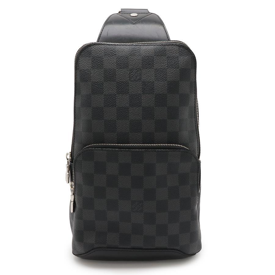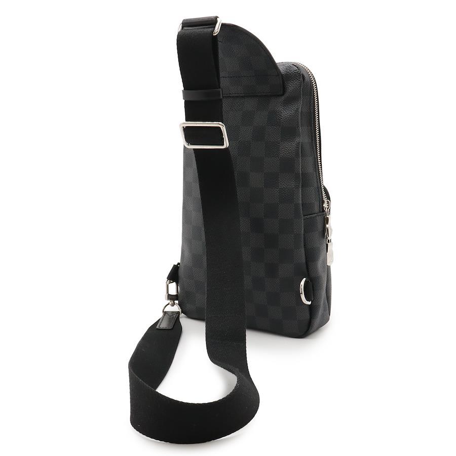 【商品説明】[サイズ]W18.5cm H30cm D5.5cm(ポケット含まず) ショルダー最長約112cm(調節可、金具含む)[材質]ダミエ・グラフィット キャンバス(PVCコーティングキャンバス)[カラー]ブラック/グレー[仕様]外側ファスナーポケット1、内側ポケット1[付属品]なし[重さ]約500g