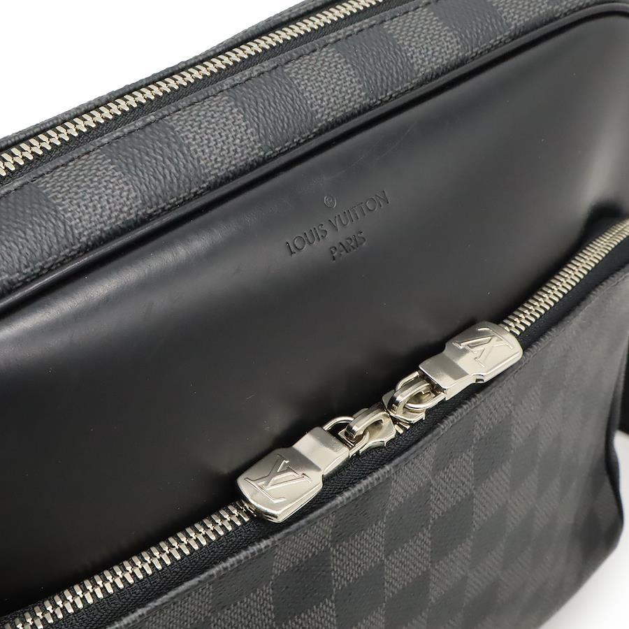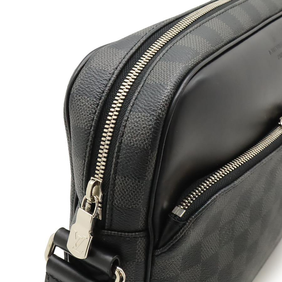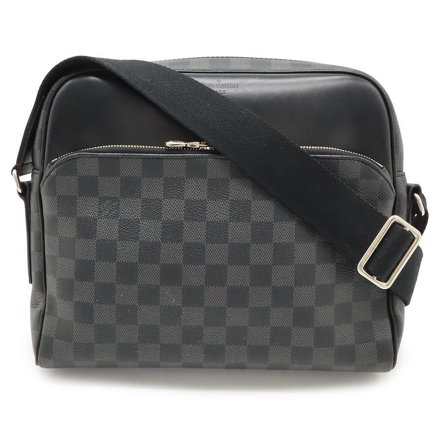 【商品説明】[サイズ]W28cm H25cm D7cm ショルダー最長約135cm(調節可、金具含む)[材質]ダミエ・グラフィット キャンバス(PVCコーティングキャンバス)/レザー[カラー]ブラック/グレー[仕様]外側ファスナーポケット1、内側ポケット2[付属品]なし[重さ]約740g