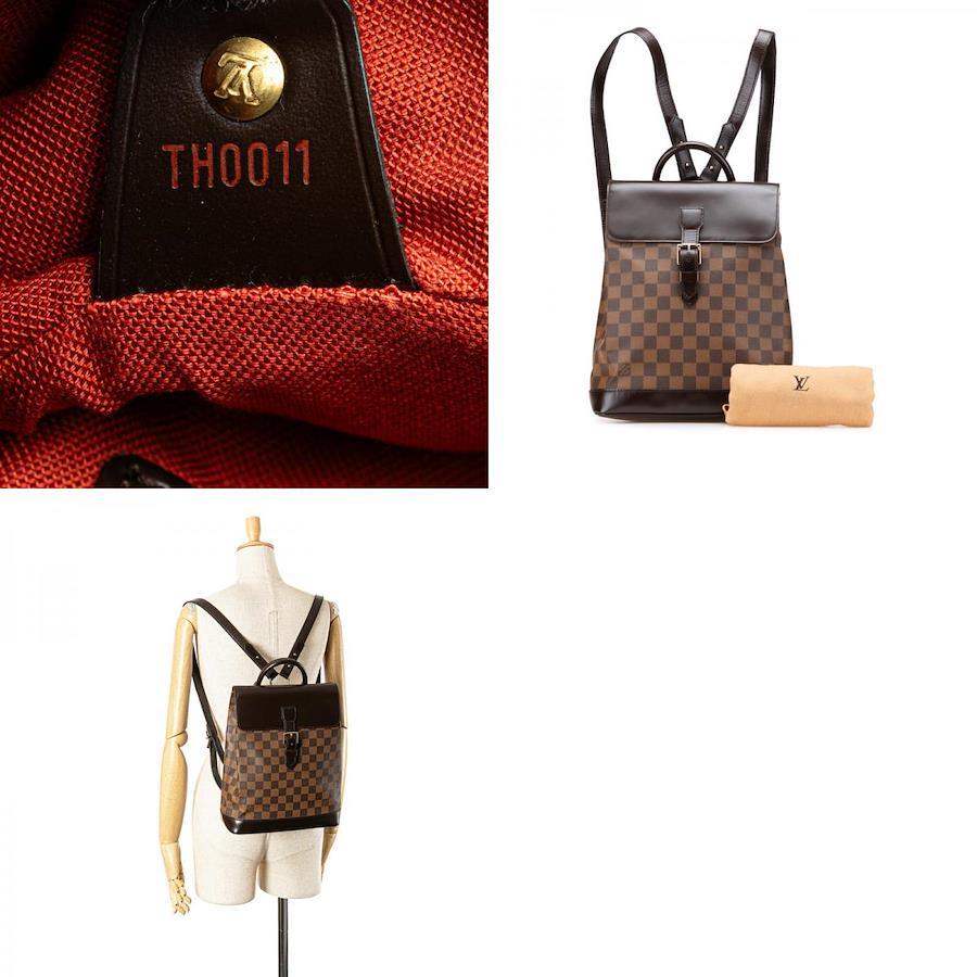 ■商品情報[管理番号]1-0217057[ブランド]ルイ ヴィトン(LOUIS VUITTON)[型番]M51132[対象]レディース[カラー] ブラウン[シリーズ]ソーホー[ライン]ダミエ[シリアル]TH0011[素材]PVC レザー[サイズ]W約24cmxH約32cmxD約10cmハンドル高さ:約5cmショルダー:約~74cm開閉式:ベルト金具内側:オープンポケットx1[付属品]保存袋(本体)[状態・コンディション]ランク AB全体コンディション詳細:底面⇒角スレショルダー⇒金具跡金具⇒スレフラップ・付け根・裏⇒薄汚れ内側⇒僅かな薄汚れ・ペン跡