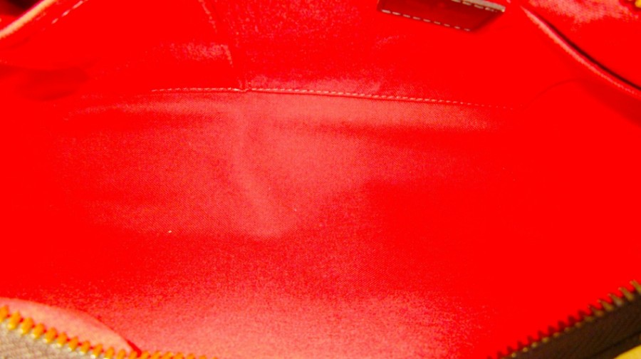 | 商品状態 | Bランク 正面のプレート金具に小傷、クスミがあります。バッグ上部のコバの部分に剥がれ、毛羽立ちがあります。ファスナー金具に小傷、変色があります。内側にうっすらとした汚れがあります。 |