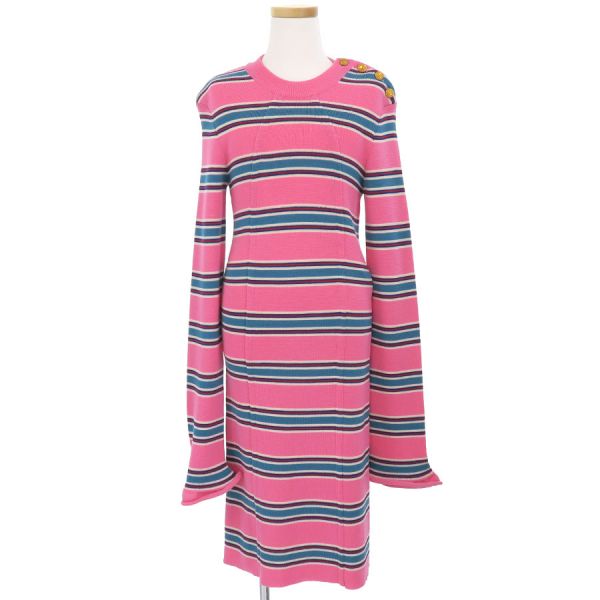 ■採寸#XS 肩幅:39cm 袖丈:70cm B:64cm~ 着丈:95cm■素材ウール100%■コメントルイ・ヴィトンからワンピースが入荷しました。ボーダー柄の左肩にLVロゴ入りのゴールドボタンが素敵なワンピースです☆状態は生地特有のやや起毛感、両袖にヨレ・クセ等が見受けられますが、目立つ汚れやダメージはないので、Aランク寄りのBランクでのご紹介です。まだまだ問題なくご着用いただけます◎