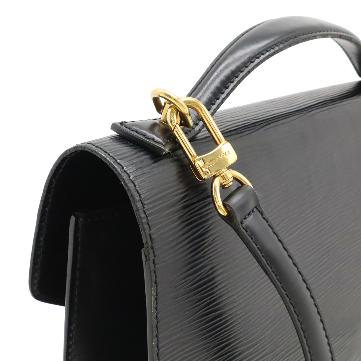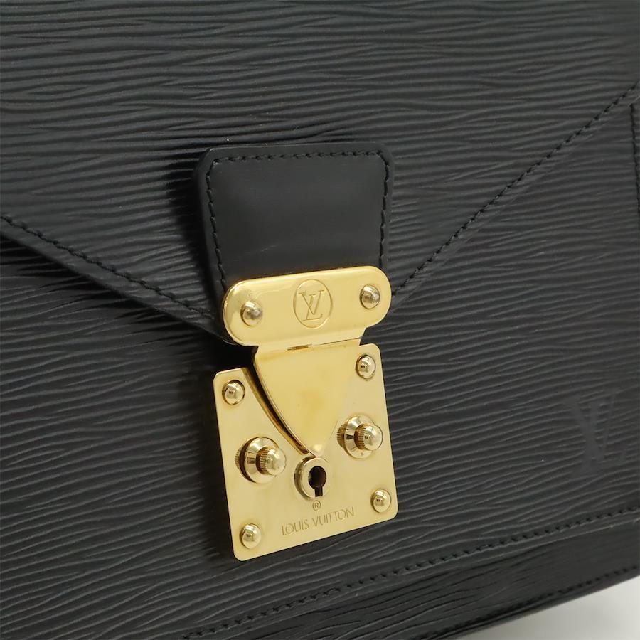【コメント】使用感のあるお品物でございます。上質なエピレザーにかっちりしたフォルムが高級感のあるヴィトン定番のセカンドバッグ、モンソー。使いやすい大きさとシックなブラックカラーがあわせるコーディネートを選ばず、ビジネスシーンでも活躍するアイテムでございます。