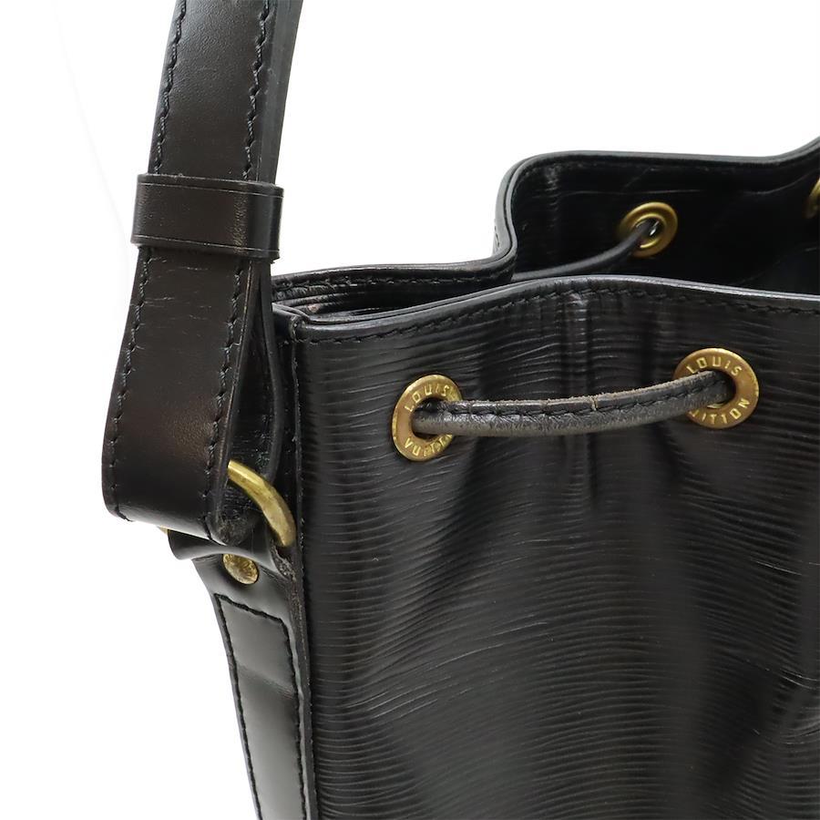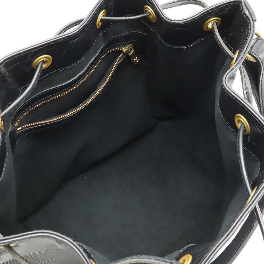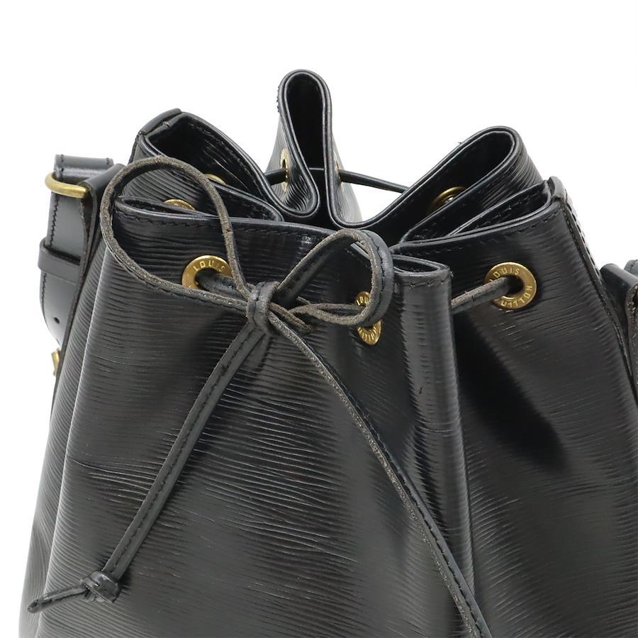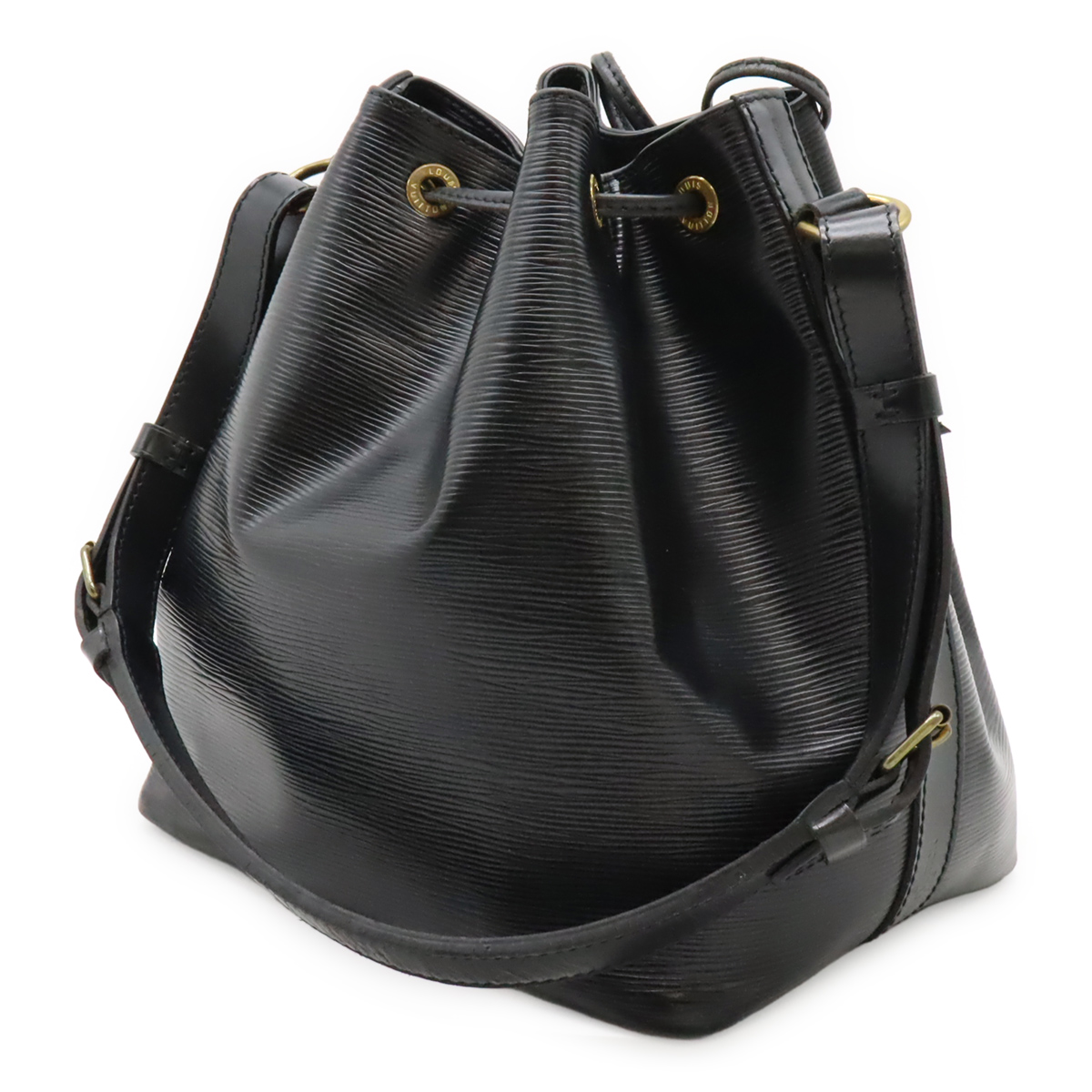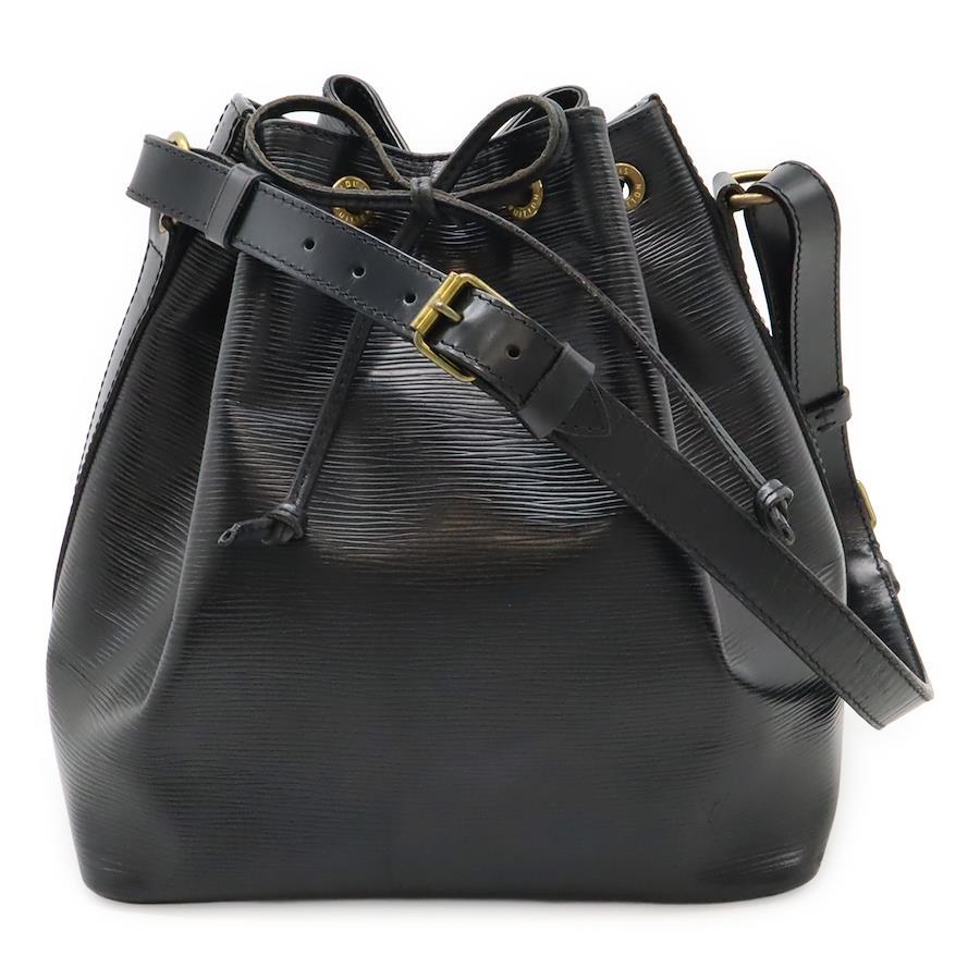 シックなブラックカラーの上質なエピレザーが高級感のある定番の巾着型ショルダーバッグ。