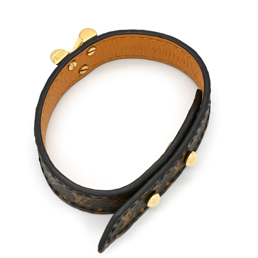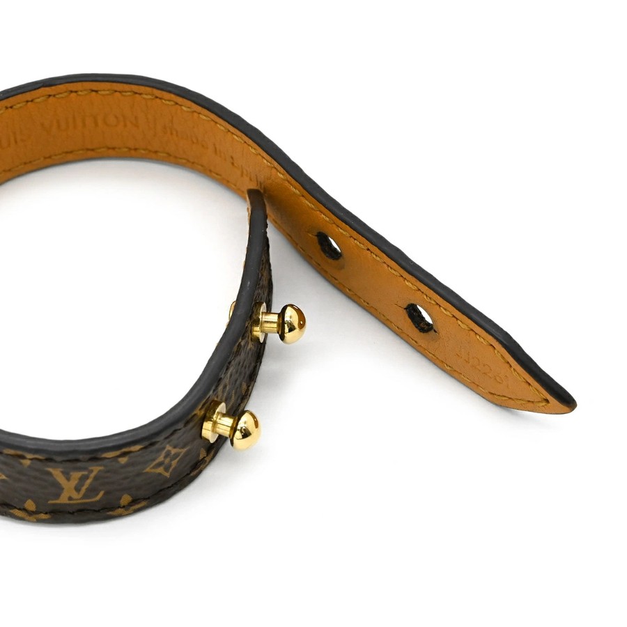 Louis Vuitton Essential V Bracelet, Metal, Monogram Canvas, Monogram Gold Hardware, M6042 JJ2261 [Pre-owned]