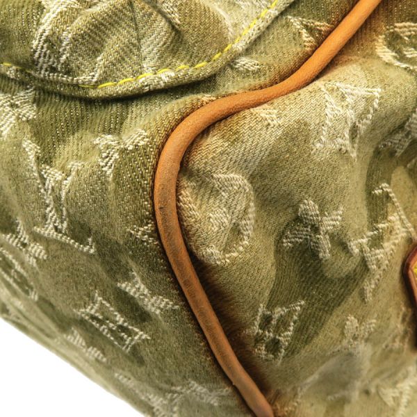 村上隆とルイヴィトンのコラボ!モノグラムパターン×迷彩デザインのカジュアルなデニムバッグ『ジャスミン』が入荷いたしました☆マチ幅がしっかりあるボストンタイプで見た目以上の収納力がございます!ファスナー開閉式で、内部にはスリットポケット、本体のフロントとバックにもそれぞれポケットが備えられており、デザイン性だけでなく機能性も抜群◎デザイン性がありコーデのアクセントにもオススメです。状態はBランクとなっており、素材特有の型崩れ、表面のスレ感、シミ、角スレ、フチスレ、変色、接着染み出し、ショルダーのスレ、色褪せ、ヌメ革部分のシミ、色褪せ、間口周りのシミ、金具部分の小傷、内部のスレ、正面ポケットの開閉緩みがございます。使用感、汚れ等のダメージは感じますがまだまだ活躍出来る状態です。是非いかがでしょうか?