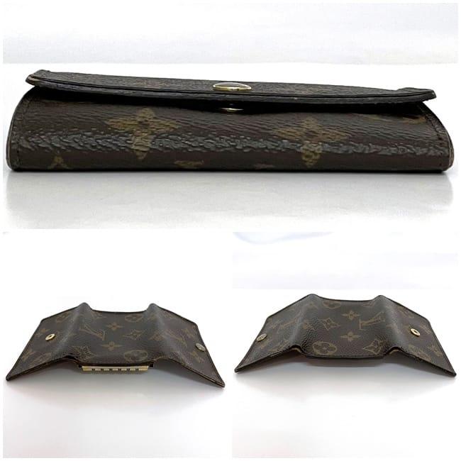 詳細説明:角や縁に擦れ、折れ目に糸飛びやコバ剥がれや素材浮き、金具の押し跡汚れ、金具に傷など使用感がございますがまだまだお使いいただけるお品物です。