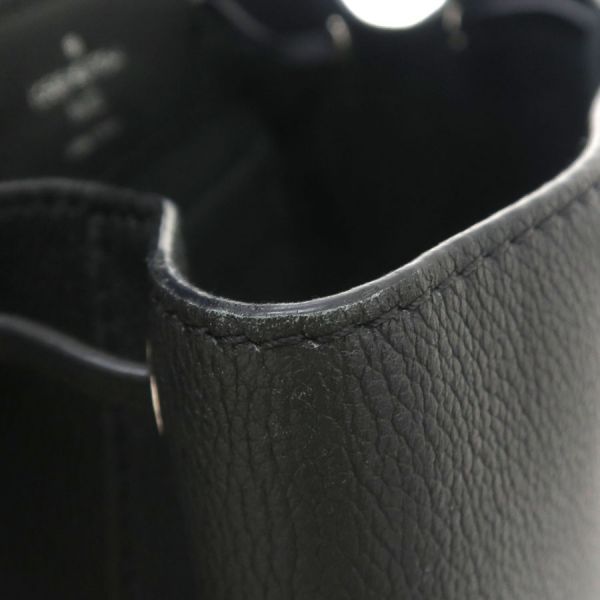 LVロゴ型のターンロックが特徴のシンプルでスタイリッシュなバッグ『ロックミー・バックパック』が入荷いたしました☆やや縦長のスリムなフォルムにペットボトルも入るサイズ感は普段使いはもちろん、ちょっとしたお出掛けから旅行のサブバッグにもおすすめです♪ターンロック開閉式に、内部にはスリットポケットもセットされていて小物の収納にも便利◎ブラック×シルバーの組み合わせは年齢コーデ問わずお使いいただけます。今回はBランクの入荷となり、全体的な使用感及びダメージに加え本体型崩れ、表面部における擦れ感、金具部の擦れ、強めの角擦れ(四隅)、被せ蓋裏側の擦れ跡、間口縁コーティング部の擦れ、内部の生地擦れを感じる状態となります。Bランク特有となる大きなダメージは抑えられておりおすすめです♪