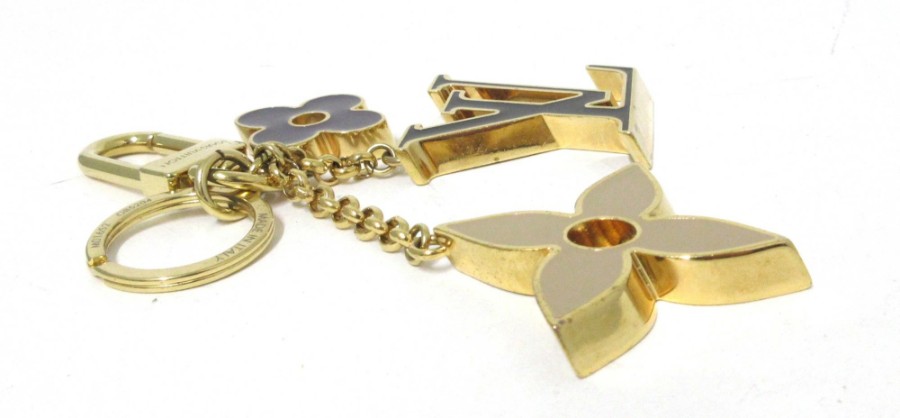 ざっくり大き目のLVロゴとモノグラムふらがーがついたバッグチャームです。ゴールドとベーシックなブラックやベージュのお色味が華やかで上品なアイテムです。いろいろなバッグに取り付けることができ、バッグに取り付けると一気に高級感がアップします。また、キーリングとしてもご使用いただく事ができます。