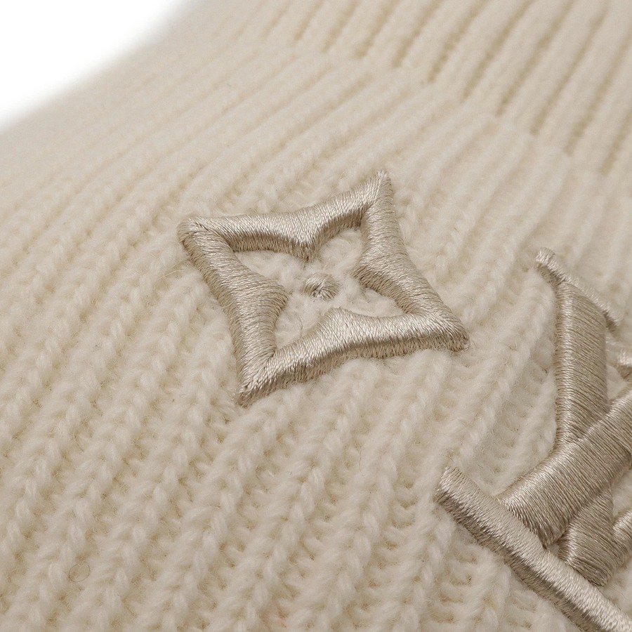ウール100%の素材をリブ編みのニットに仕立て、アイコニックなシグネチャー・モチーフをあしらって仕上げたニット帽「ビーニー・LV ヘッドライン」。
